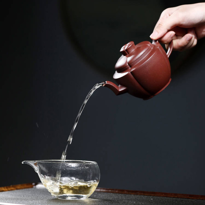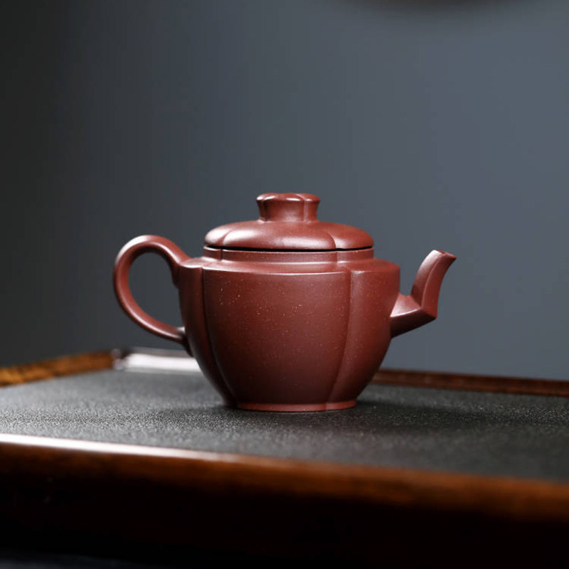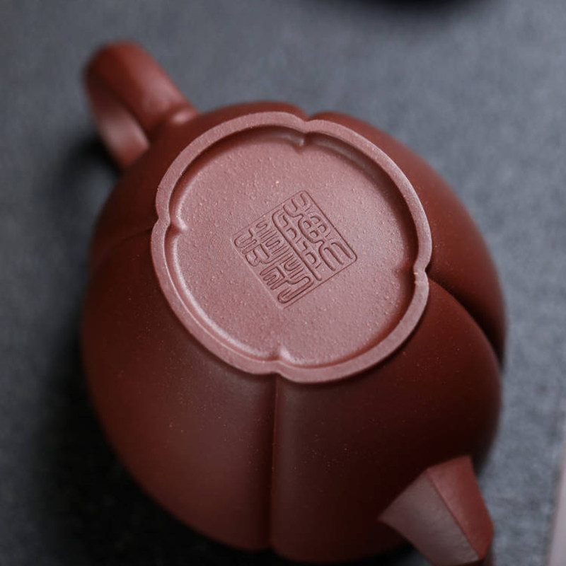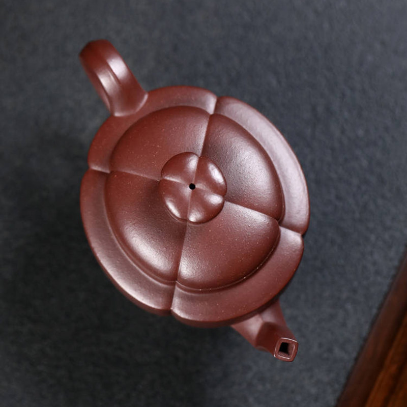 宜兴紫砂壶原矿龙血砂筋纹花蕾壶中式礼品茶具筋纹器花型壶 250ml