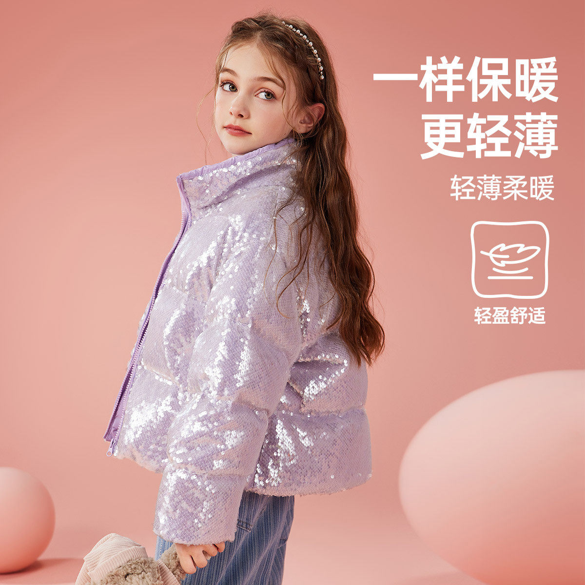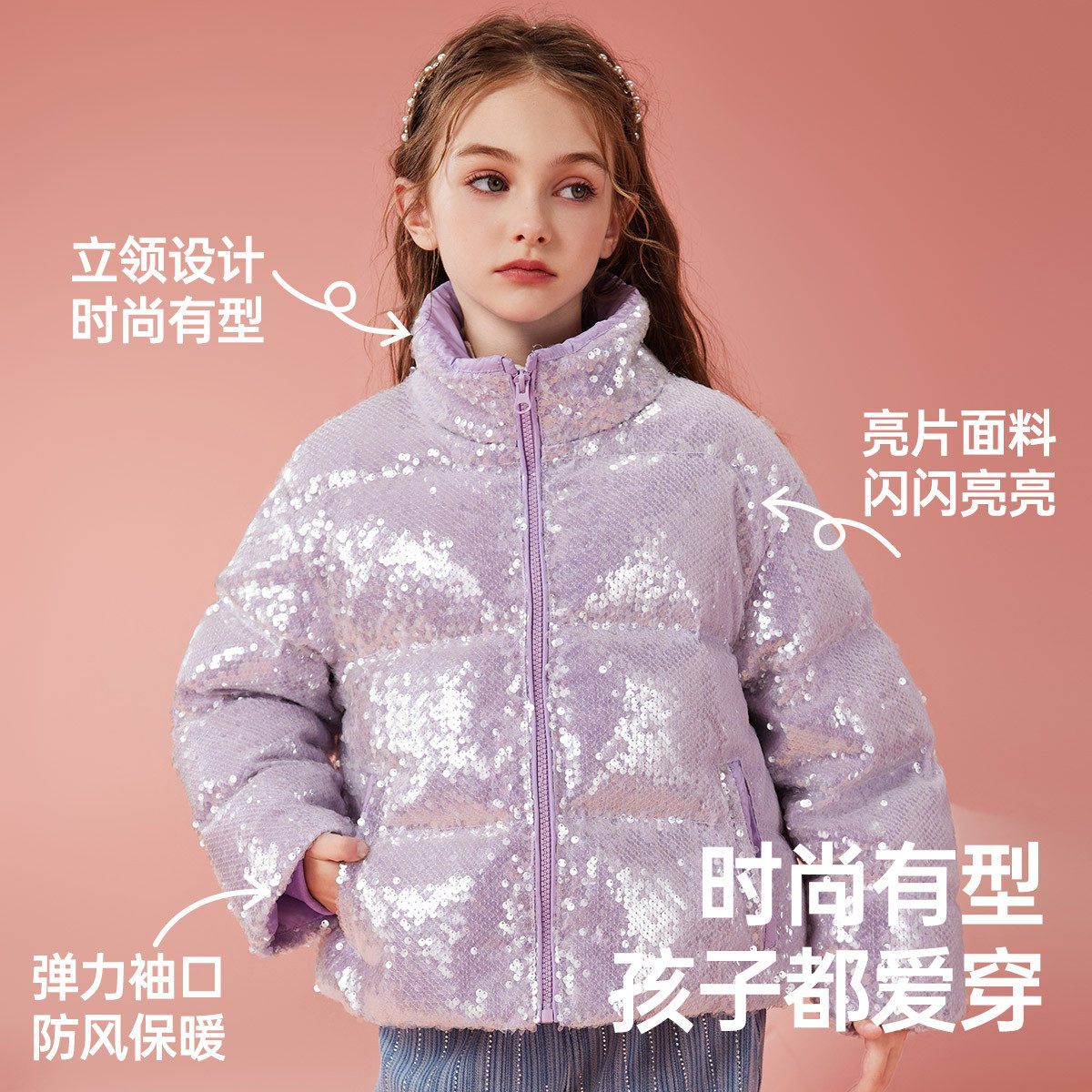 ask 女童亮片羽绒服90绒冬儿童洋气保暖羽绒服宝宝衣服