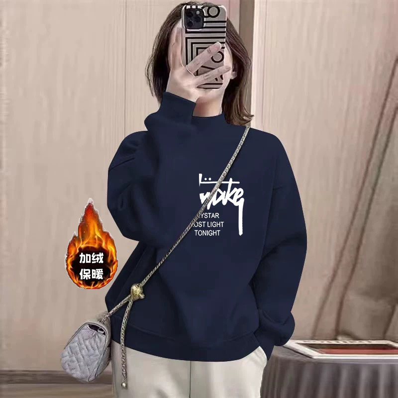 纯棉加绒加厚卫衣女2025秋冬新款爆款时尚半高领洋气套头长袖上衣