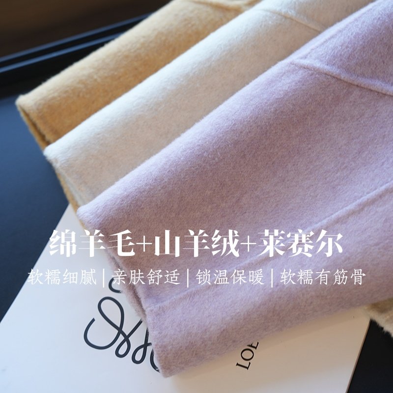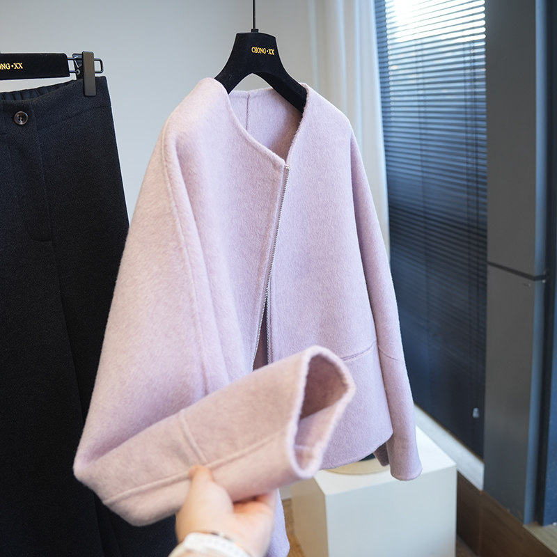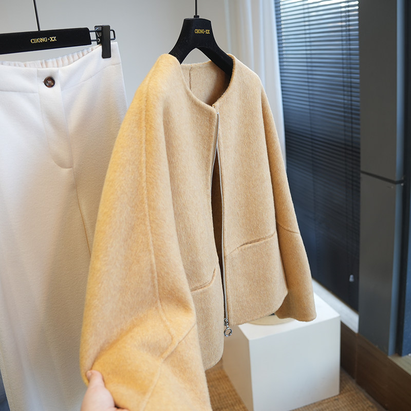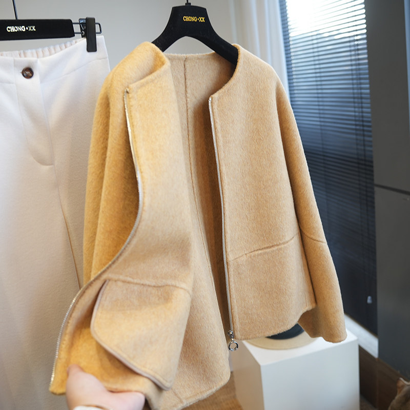 虫小小 羊绒羊毛圆领拉链双面呢短款呢大衣女毛呢外套秋冬季A78M