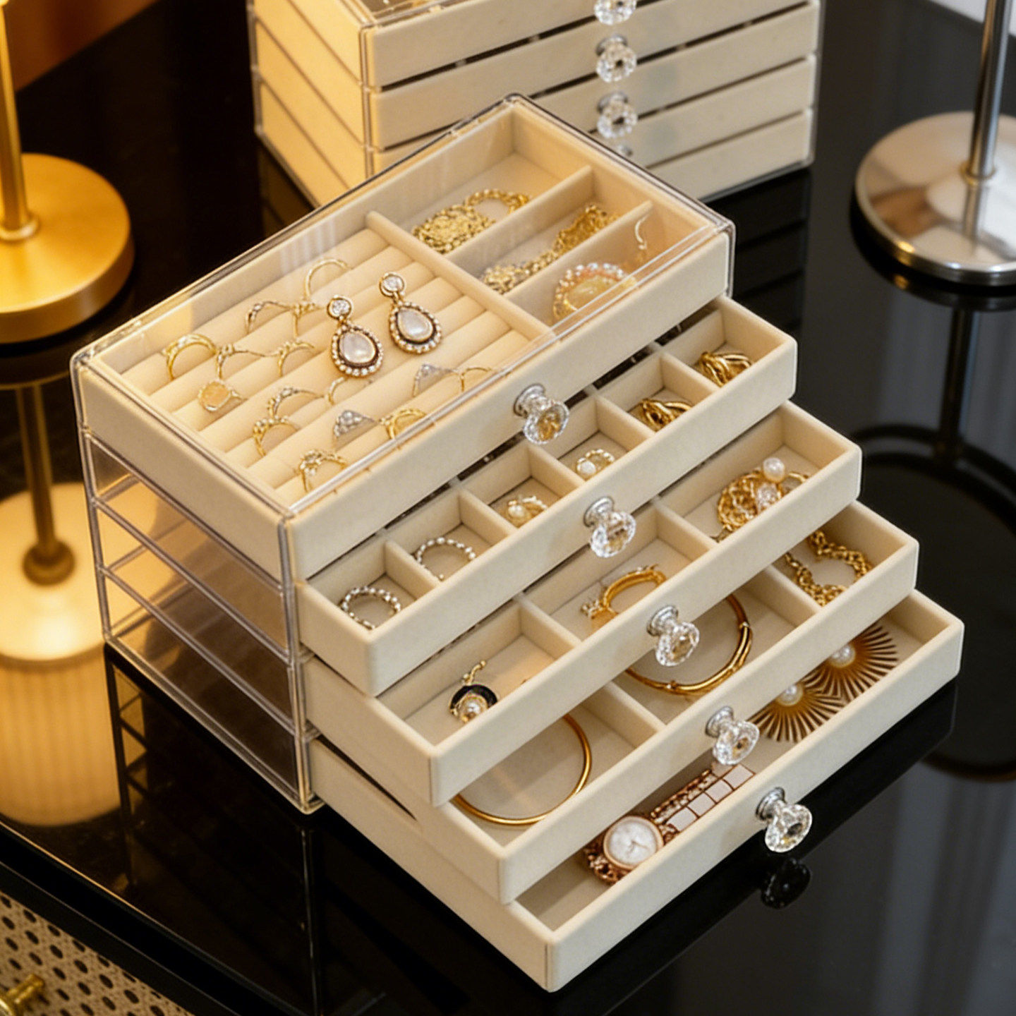 首饰盒多层防氧化绒布精致耳环项链手镯饰品收纳盒高档配饰手饰盒