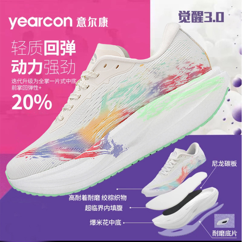 意尔康运动鞋男竞速训练鞋轻便防滑跑鞋女缓震回弹专业碳板跑步鞋