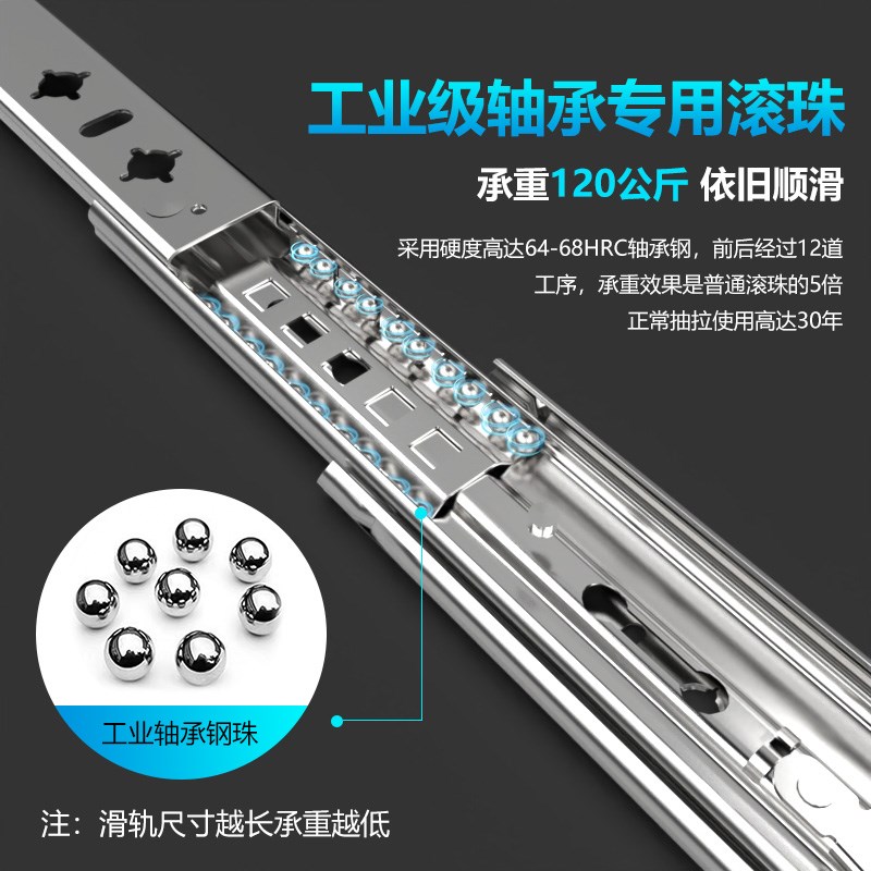 澳诺德53重型滑轨工业抽屉三节加厚滑道轨道房车带锁承重抽拉导轨