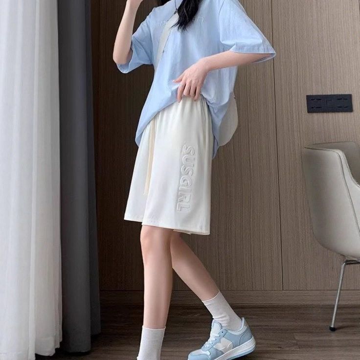 阔腿薄款运动休闲高腰女夏直筒五分百搭短裤垂感显瘦宽松2025中裤
