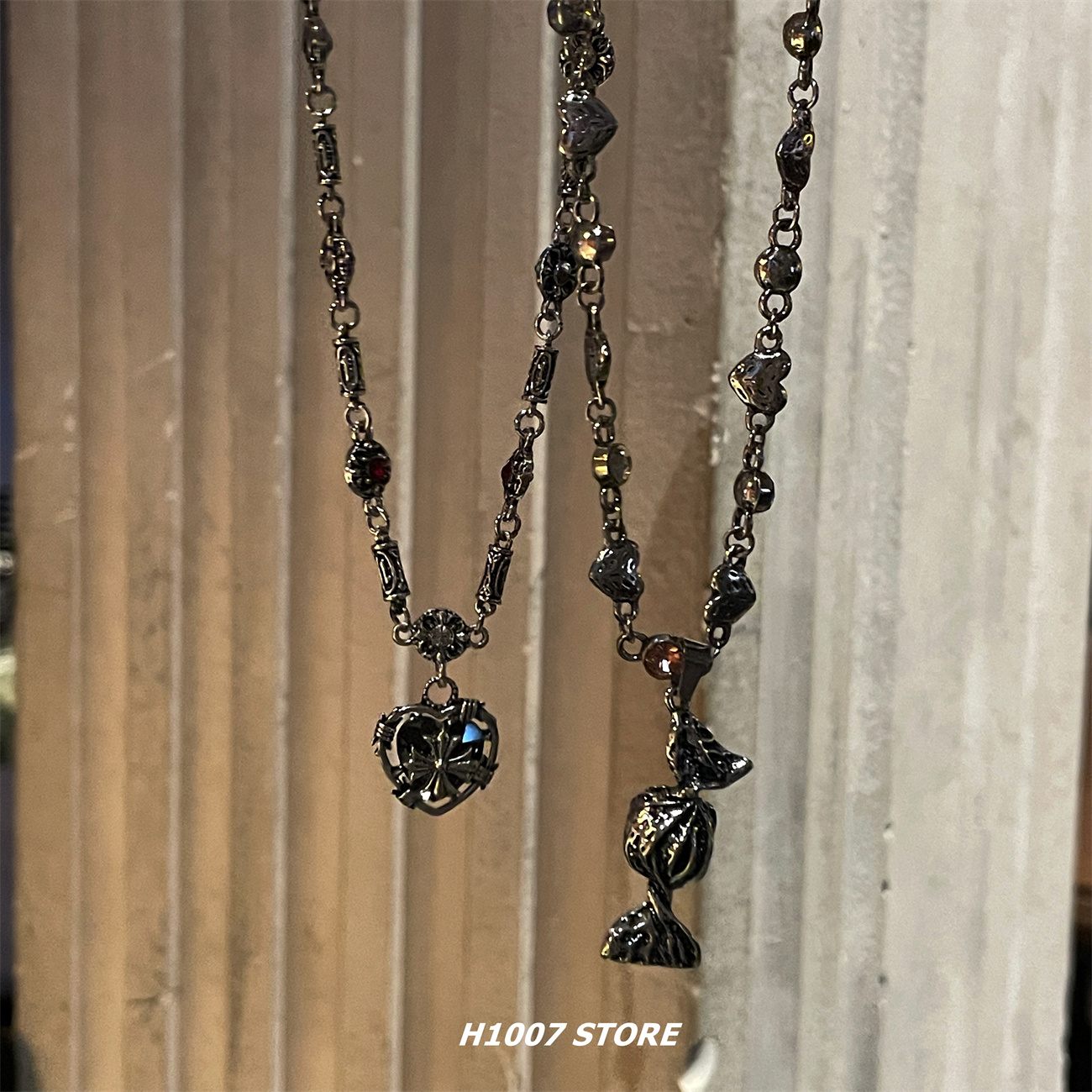 vintage定制款克罗十字花爱心男毛衣链女嘻哈风锁骨链小众感项链