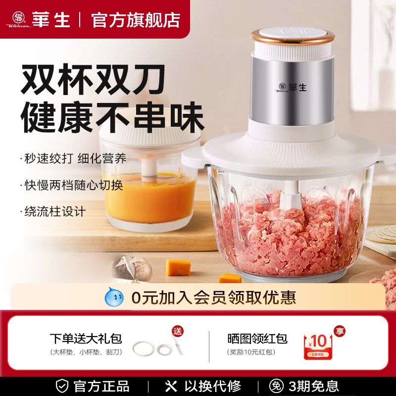 华生绞肉机家用三用搅拌机小型婴儿肉馅机电动绞馅机多功能料理机