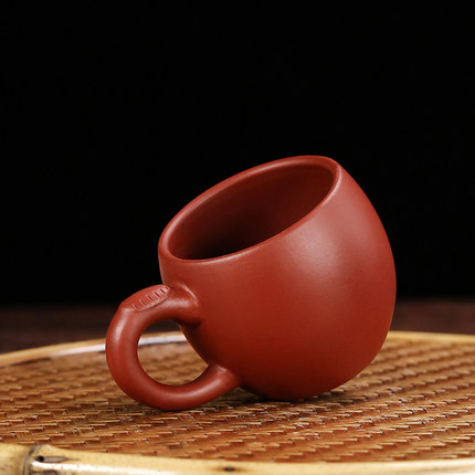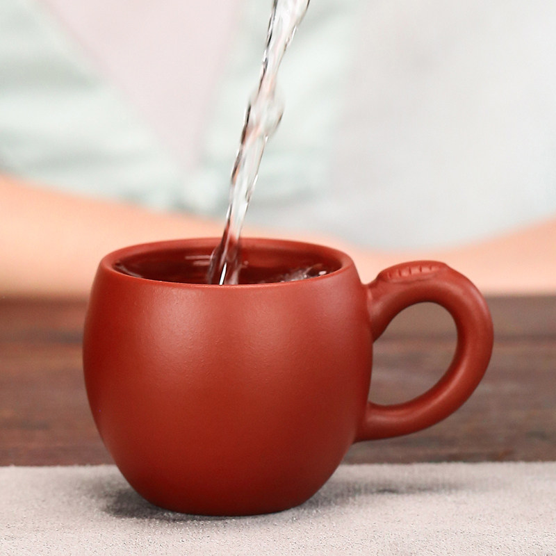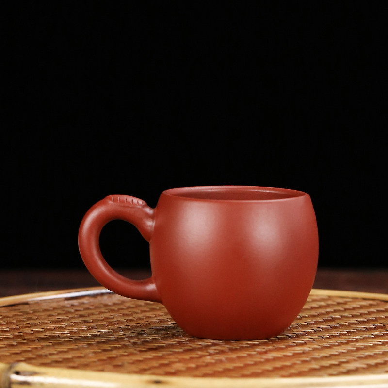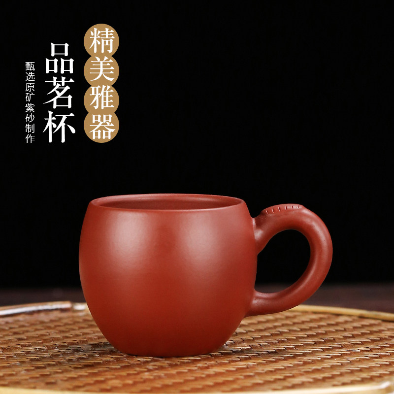 紫砂杯小杯子朱泥大红袍茶具主人杯茶碗宜兴单杯品茗杯带把小茶杯