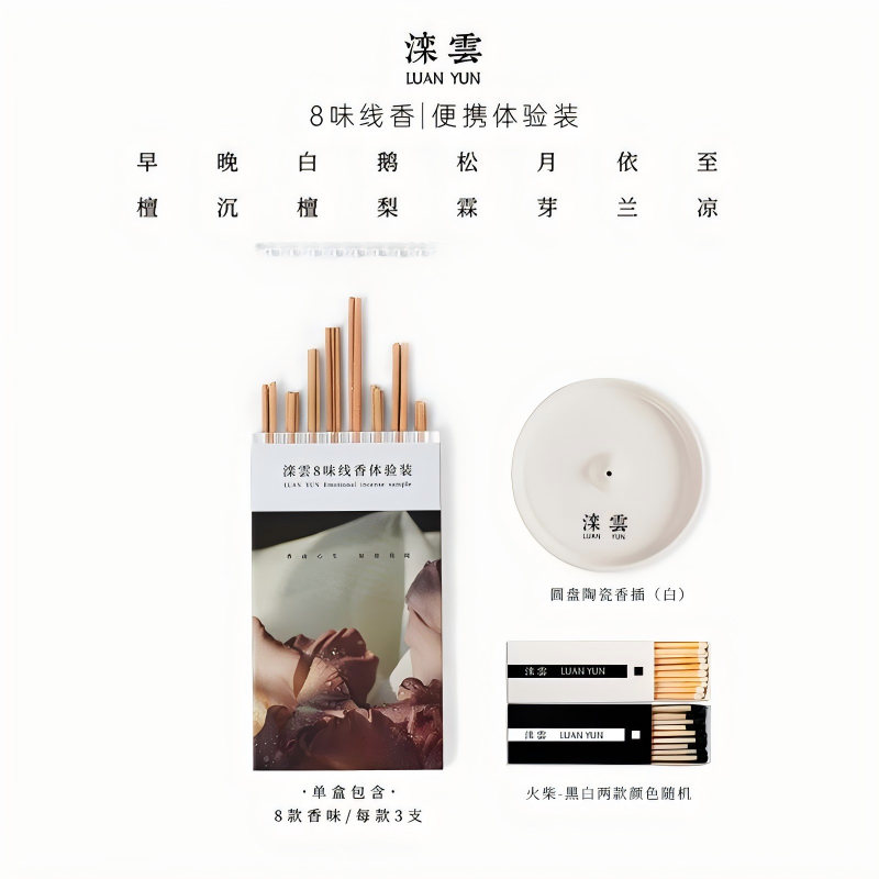 滦云线香花果香系列8味品鉴装 花香中式香薰沉香檀香送香插火柴