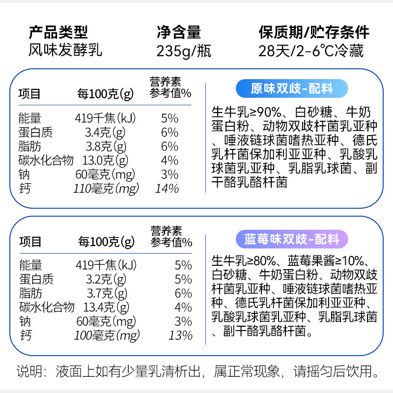 和润益生菌酸奶 蓝莓/原味风味发酵乳多种活性益生菌235g低温酸奶