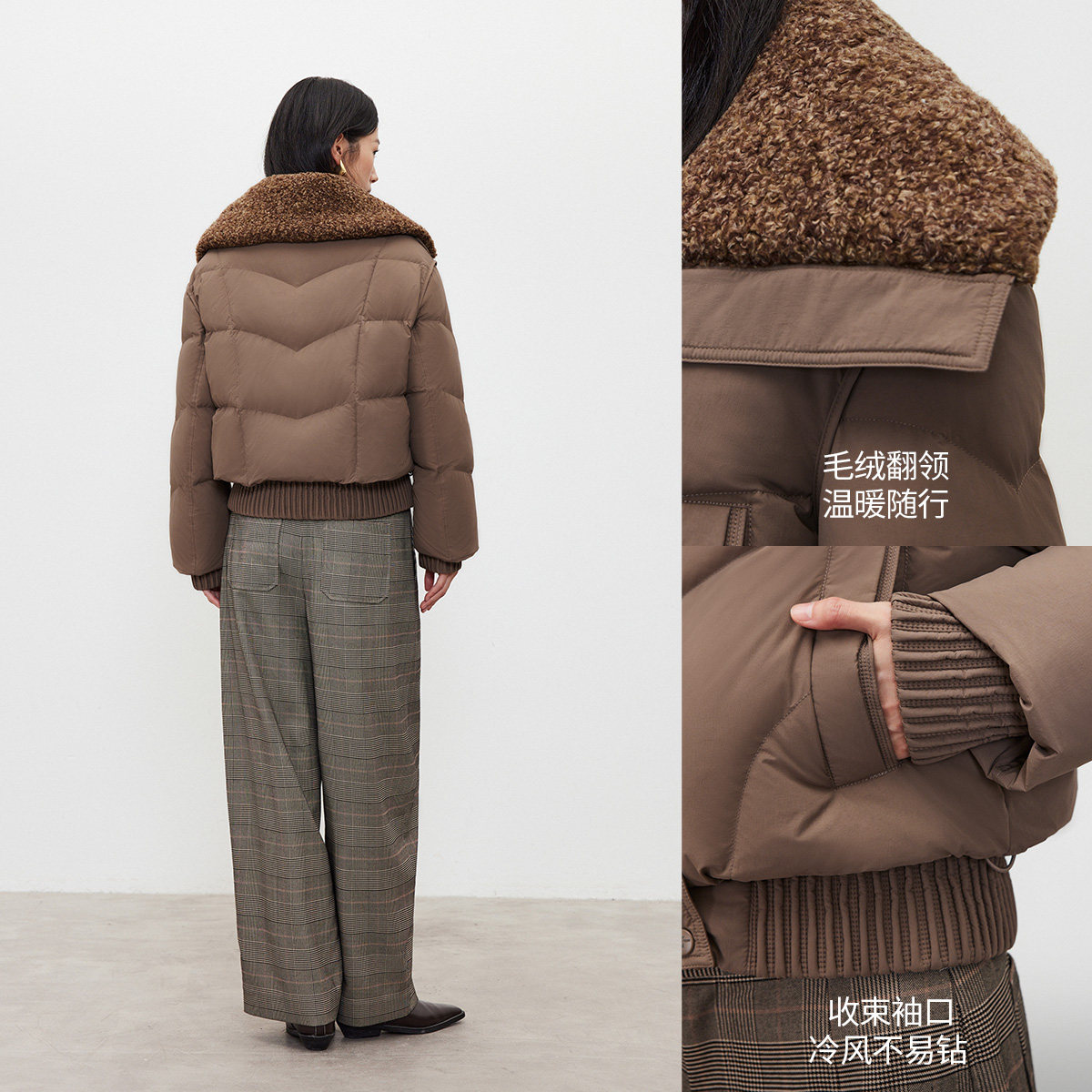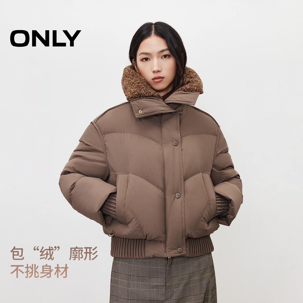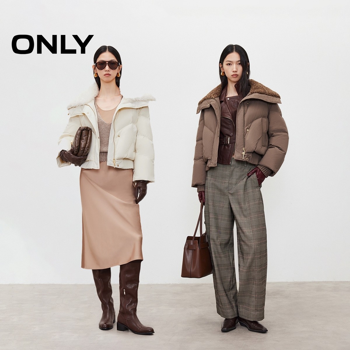 ONLY2025冬季新款宽松短款亲肤保暖双向拉链翻领90白鸭绒羽绒服女