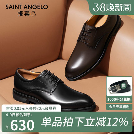 报喜鸟皮鞋男士商务正装鞋春秋新款真皮新郎结婚鞋内增高德比鞋