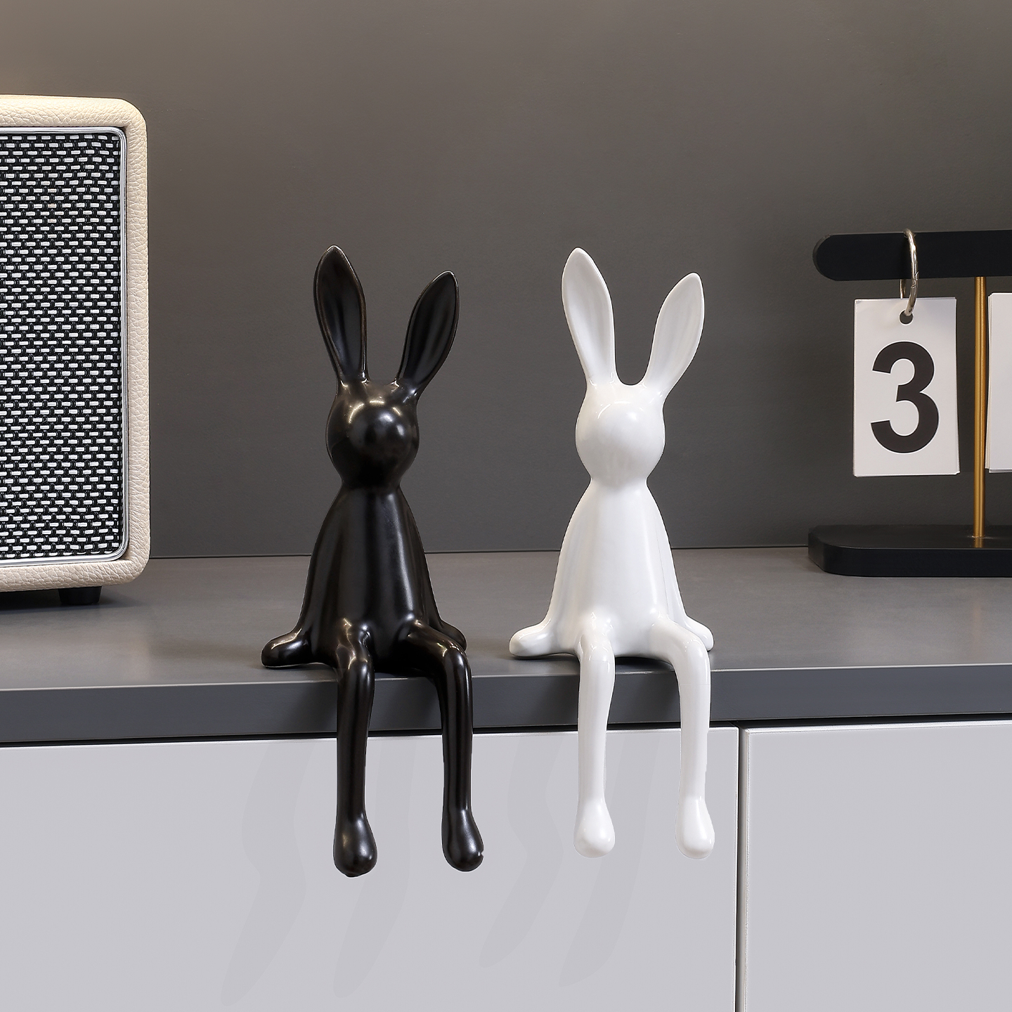 创意坐姿兔子轻奢高档摆件客厅电视柜酒柜桌面台面装饰高级感好物