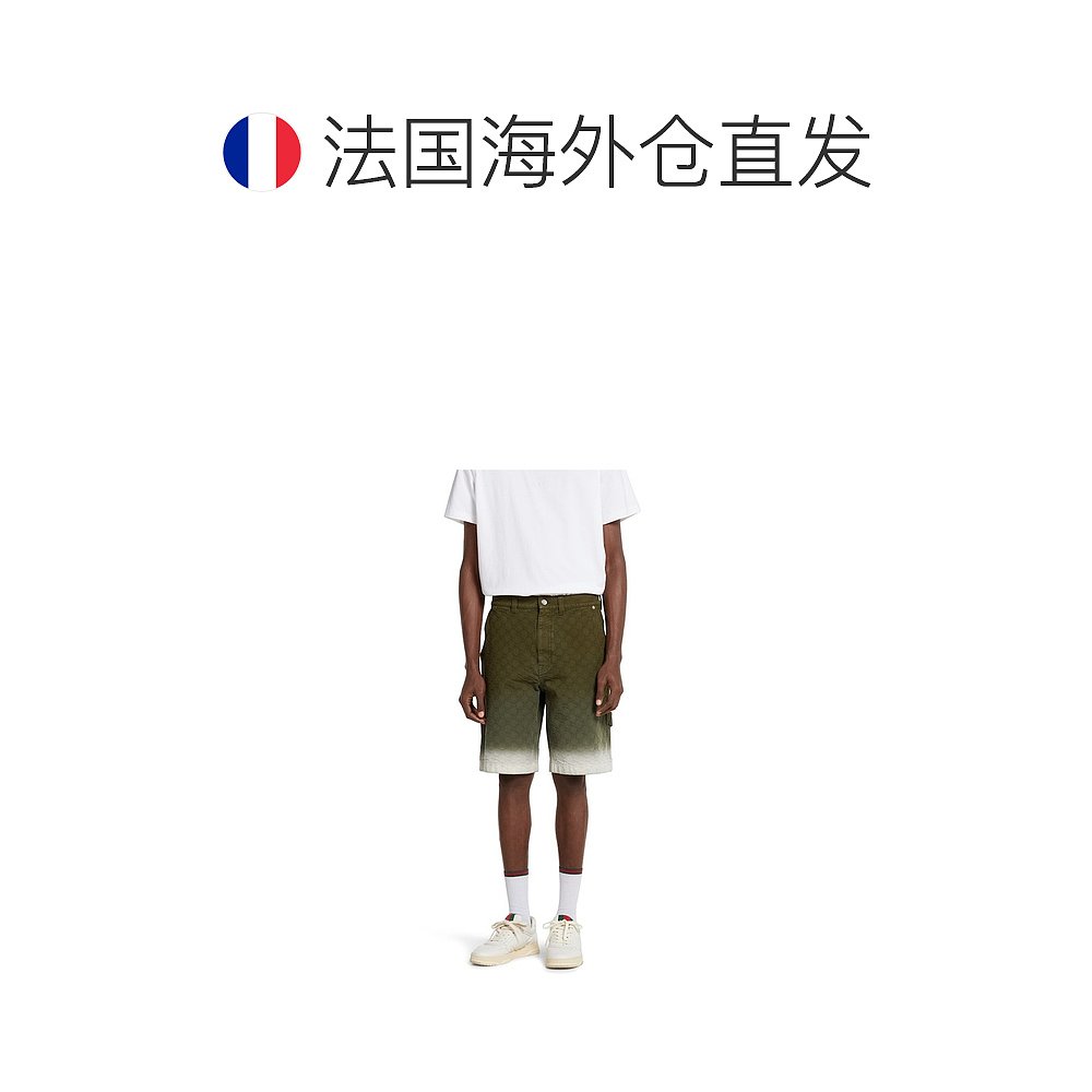 自营欧洲直邮Gucci/古驰 男士森林绿/白色棉双G提花牛仔短裤