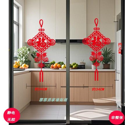 静电无胶贴画新年喜庆厨房贴画推拉门防撞墙贴玻璃贴纸福字门贴纸