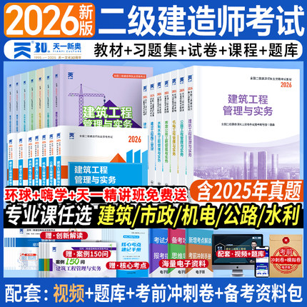 天一网校备考2026年二建教材考试书历年真题库试卷正版2025二级建造师建筑市政机电公路水利法规必刷题官方习题集刷题资料讲义押26
