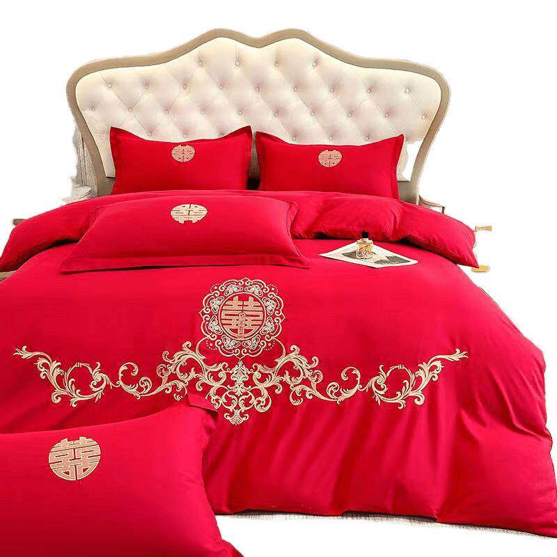 结婚高档龙绣刺婚四件套新婚红色床单床上厂家直供用凤品庆被套纯
