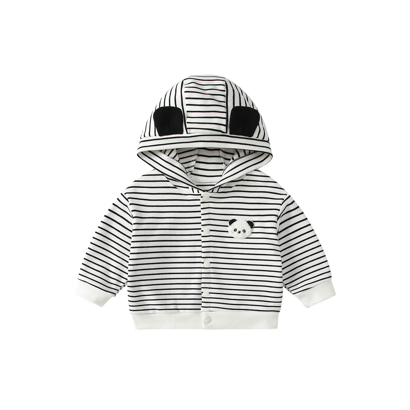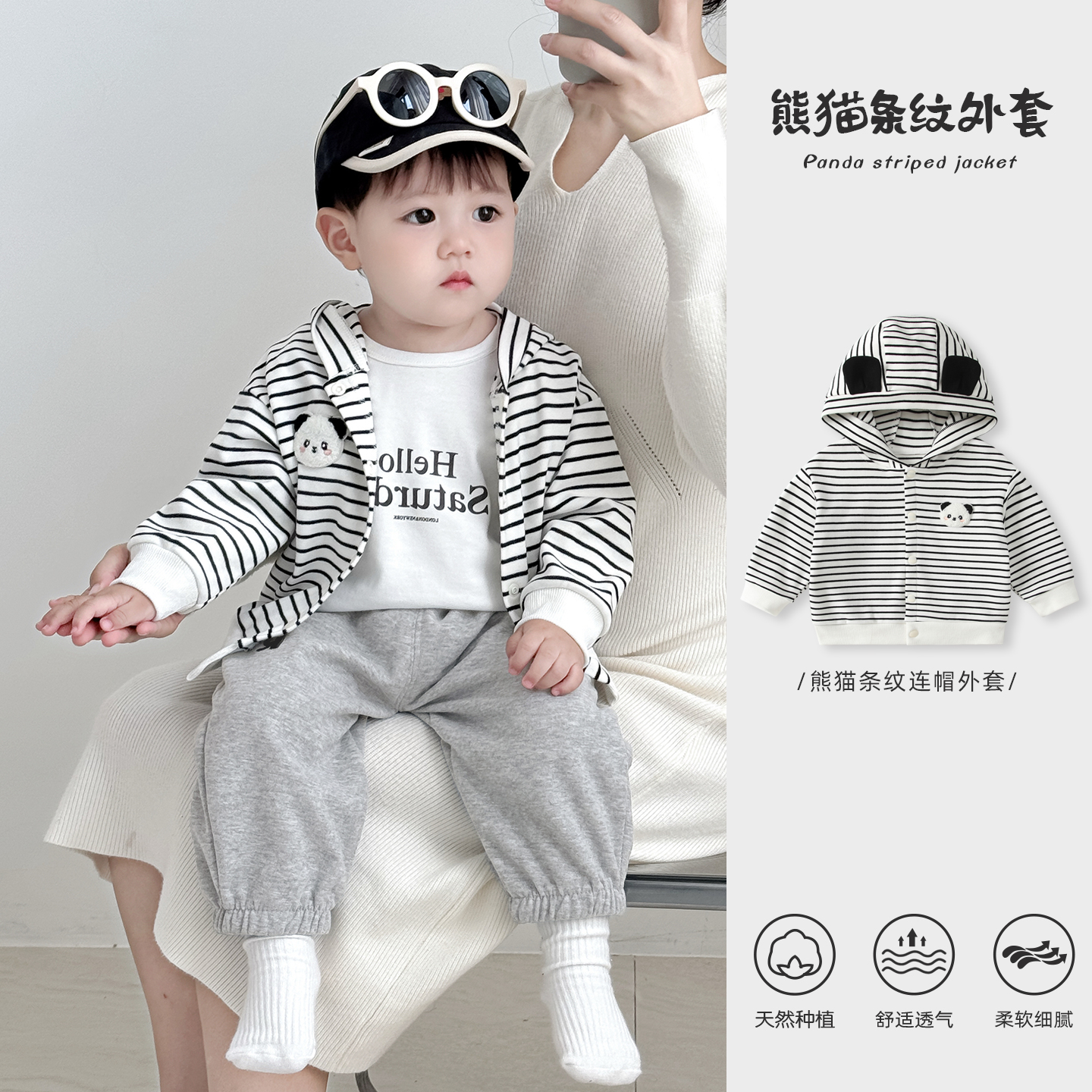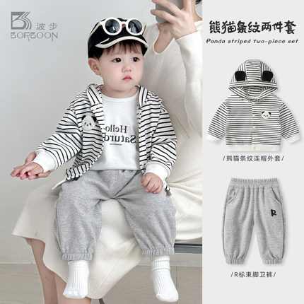 男宝宝套装新款连帽卫衣两件套婴儿春秋条纹上衣外套秋装分体衣服