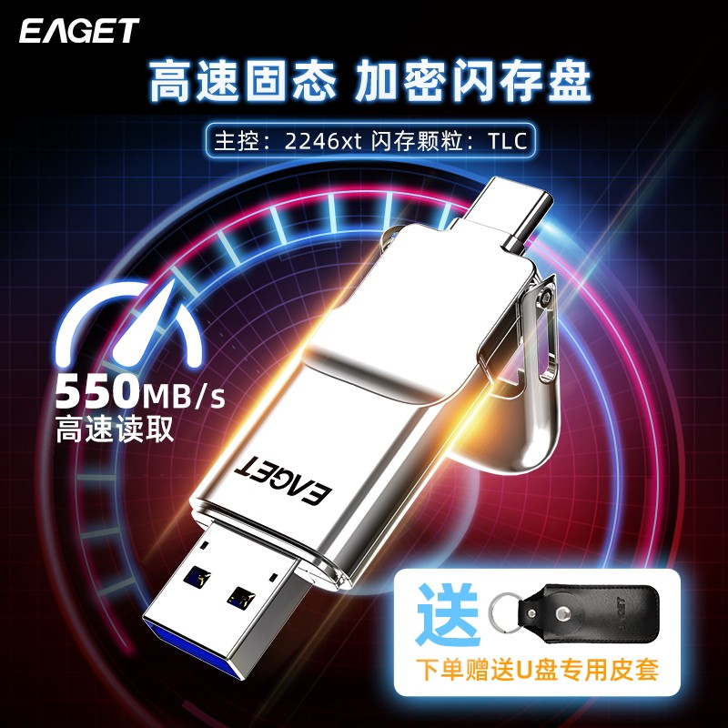 忆捷固态u盘加密手机电脑两用typec双接口高速移动优盘大容量1t