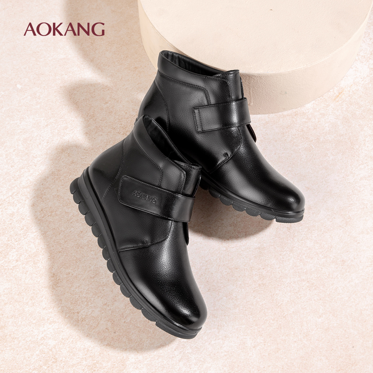 奥康 女鞋妈妈棉鞋女冬季新款加绒保暖防滑真皮软底中老年棉靴N