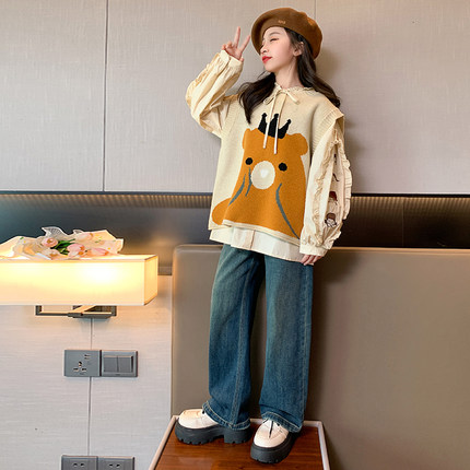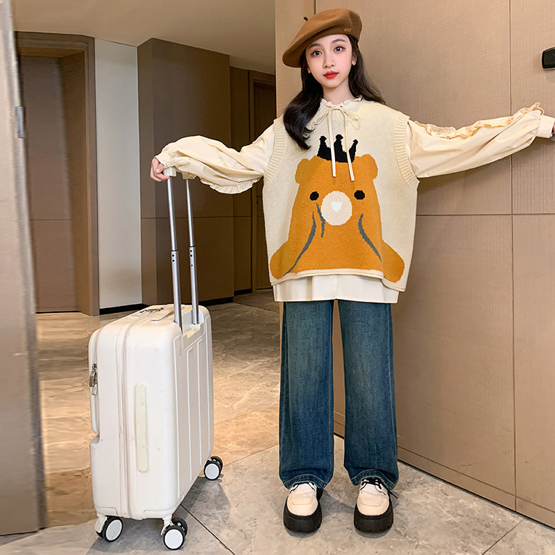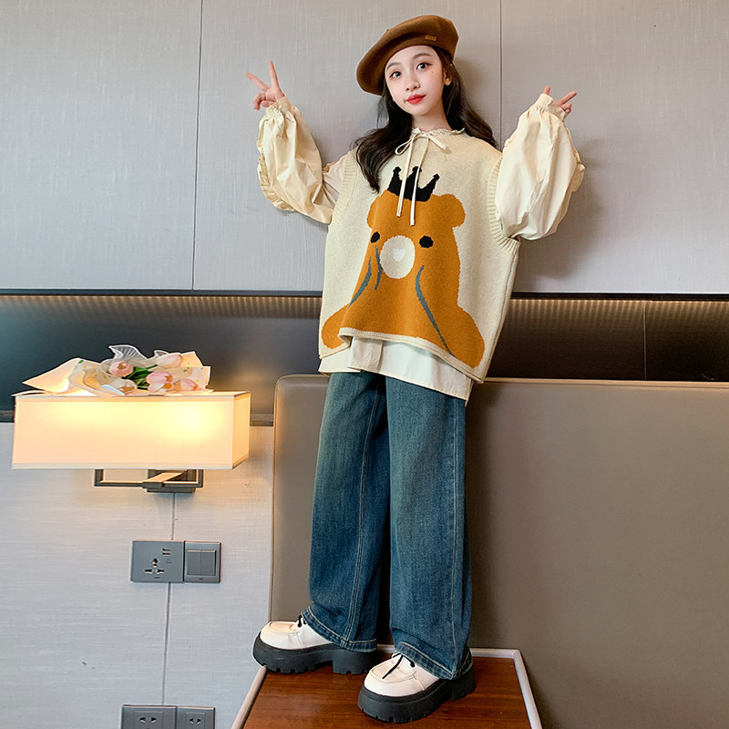女童套装春秋款2025新款儿童时髦洋气秋装中女大童衬衫马甲三件套