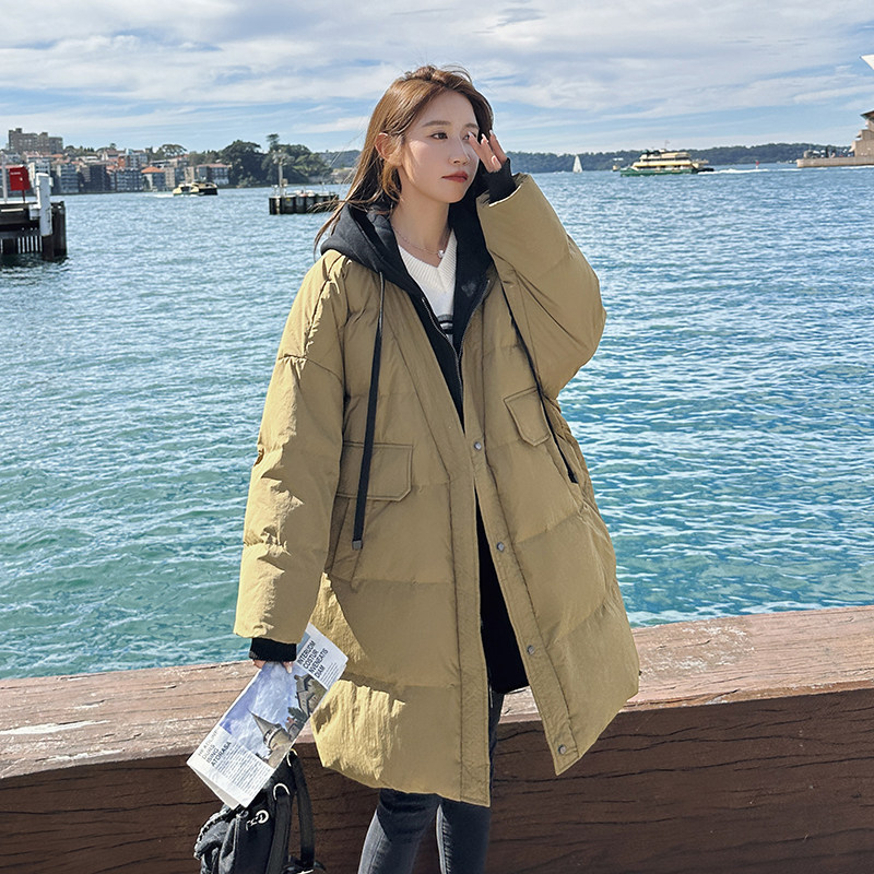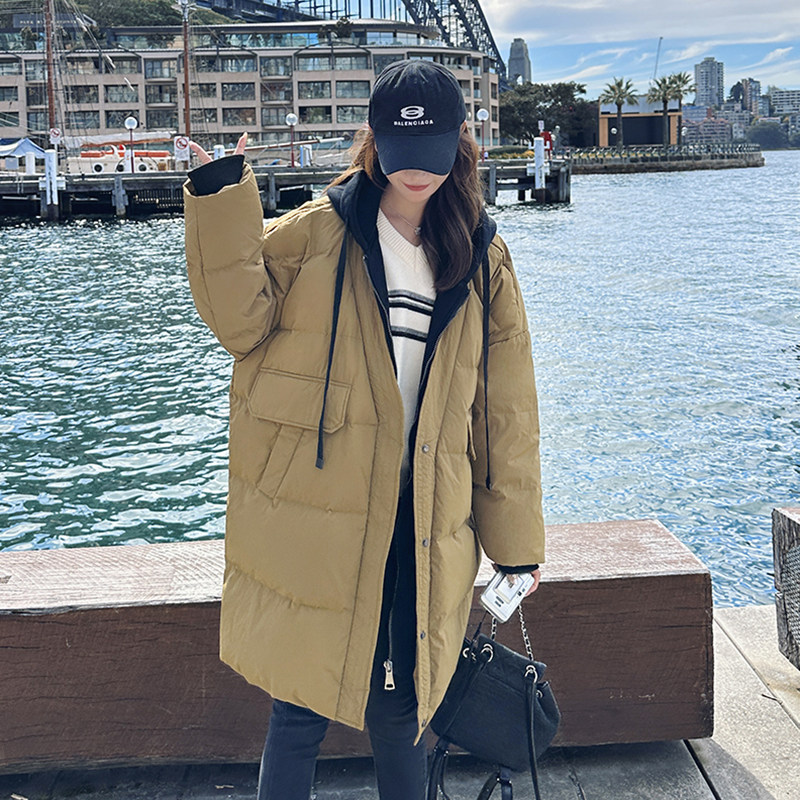 2-300斤胖mm大码女装假两件连帽加厚中长款棉服冬季宽松棉衣外套