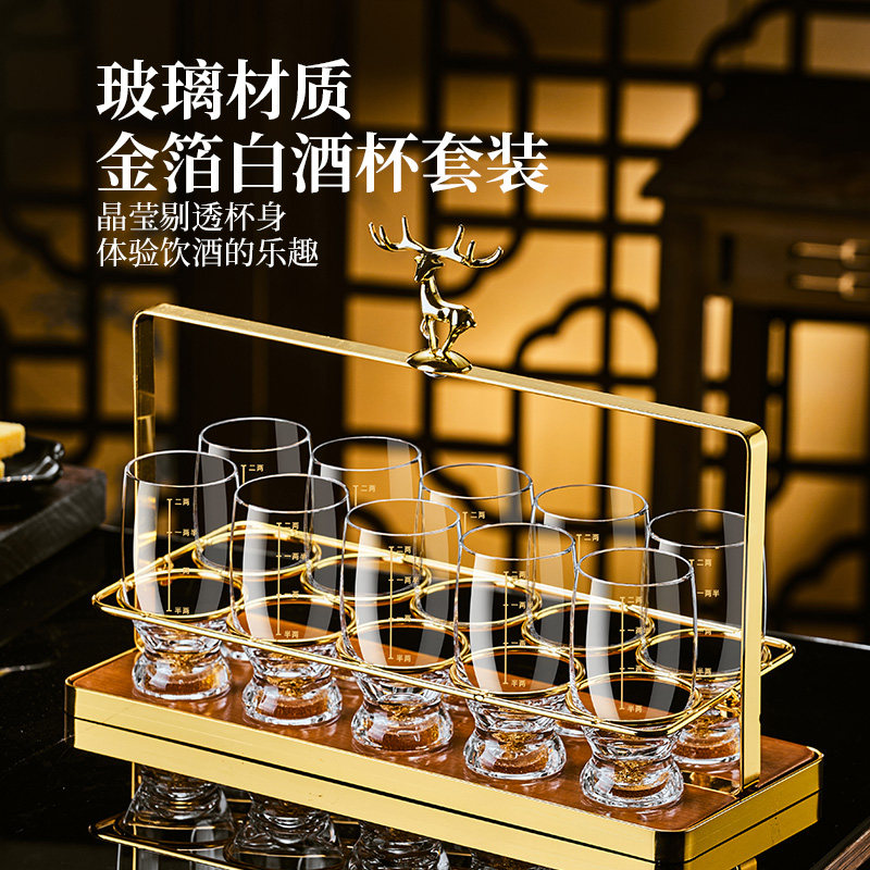 轻奢高档二两白酒杯家用带刻度水晶玻璃烈酒杯中式小酒杯酒具套装
