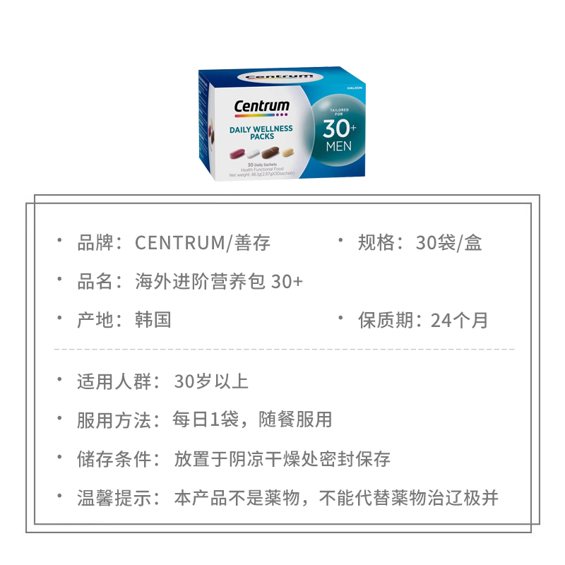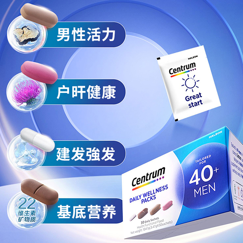 Centrum善存海外进阶营养包男士复合维生素30/40岁+多维每日营养