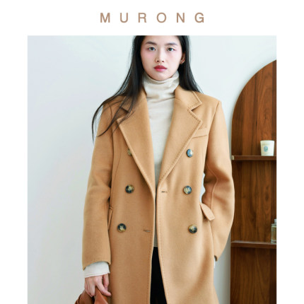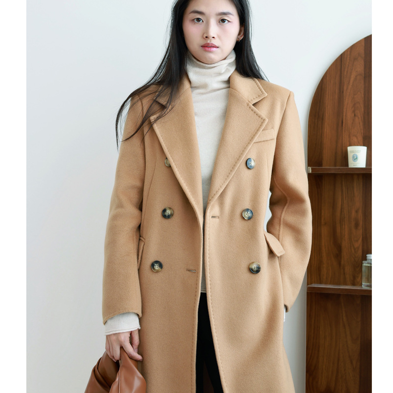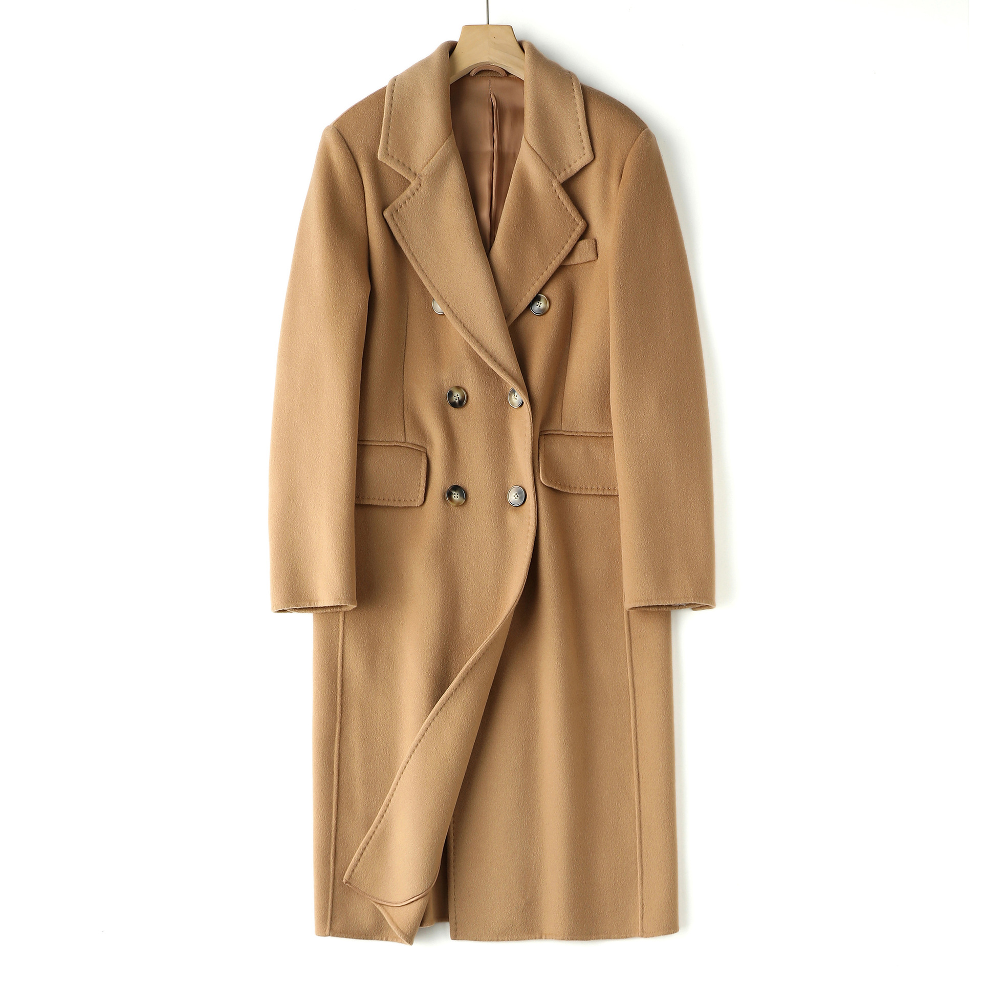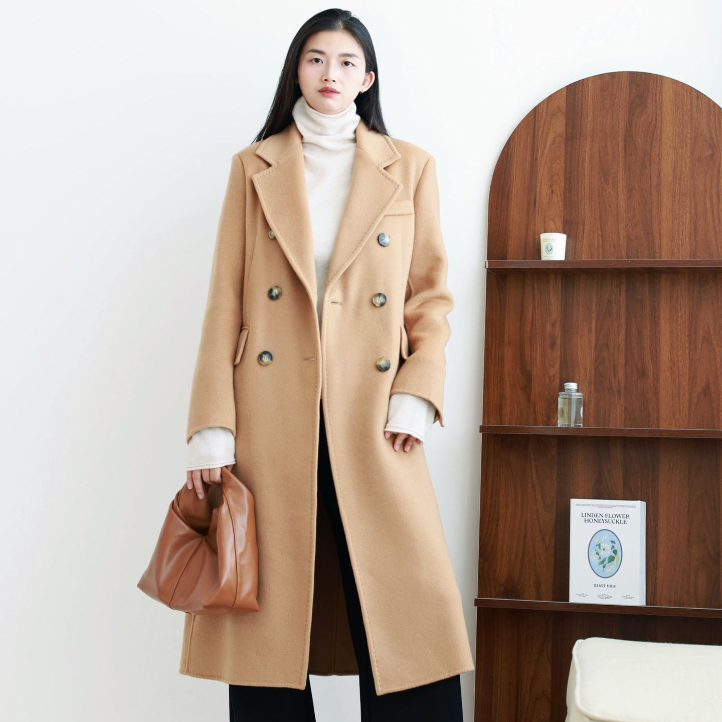 飒美西装高支小羊绒大衣知性翻驳领双面呢外套长款修身显瘦秋新品