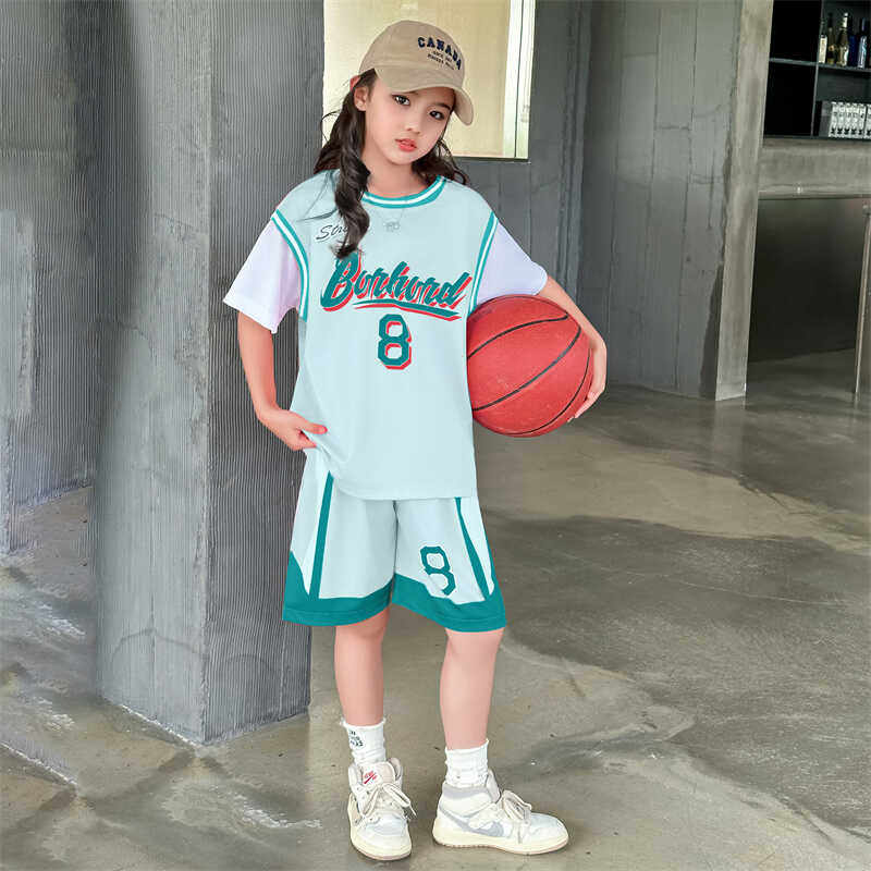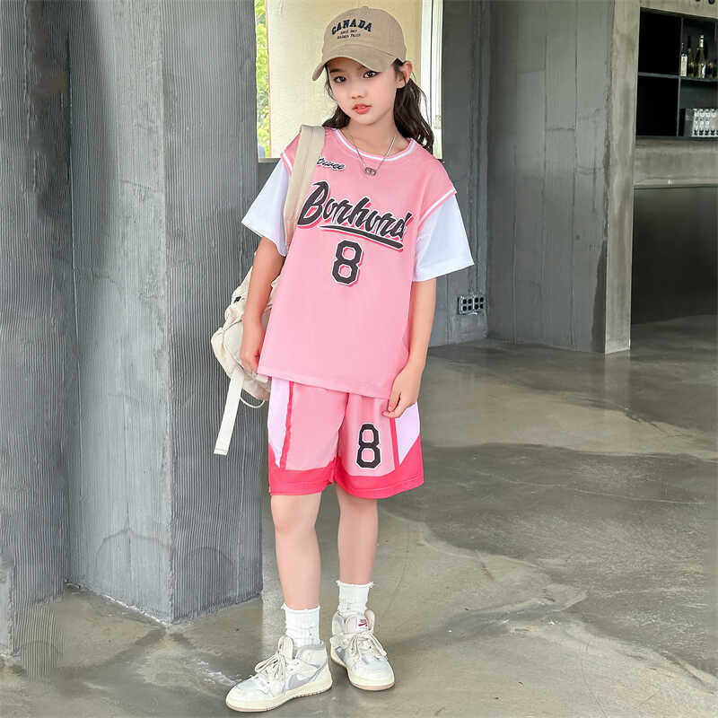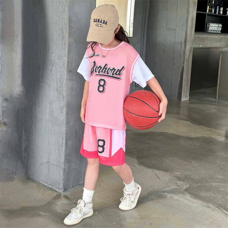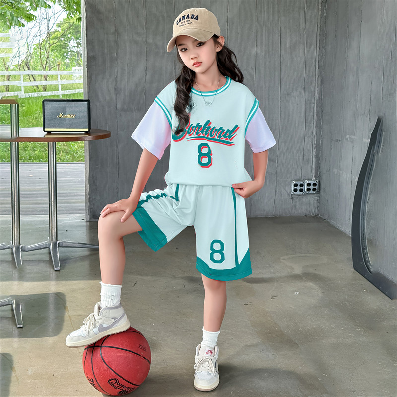 女童运动套装篮球服儿童夏季速干假两件球衣中大童新款夏装训练服