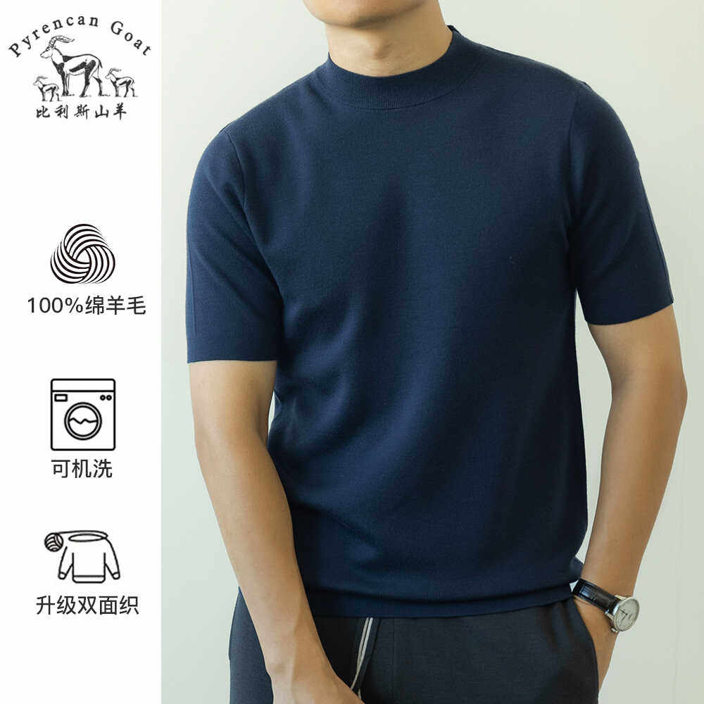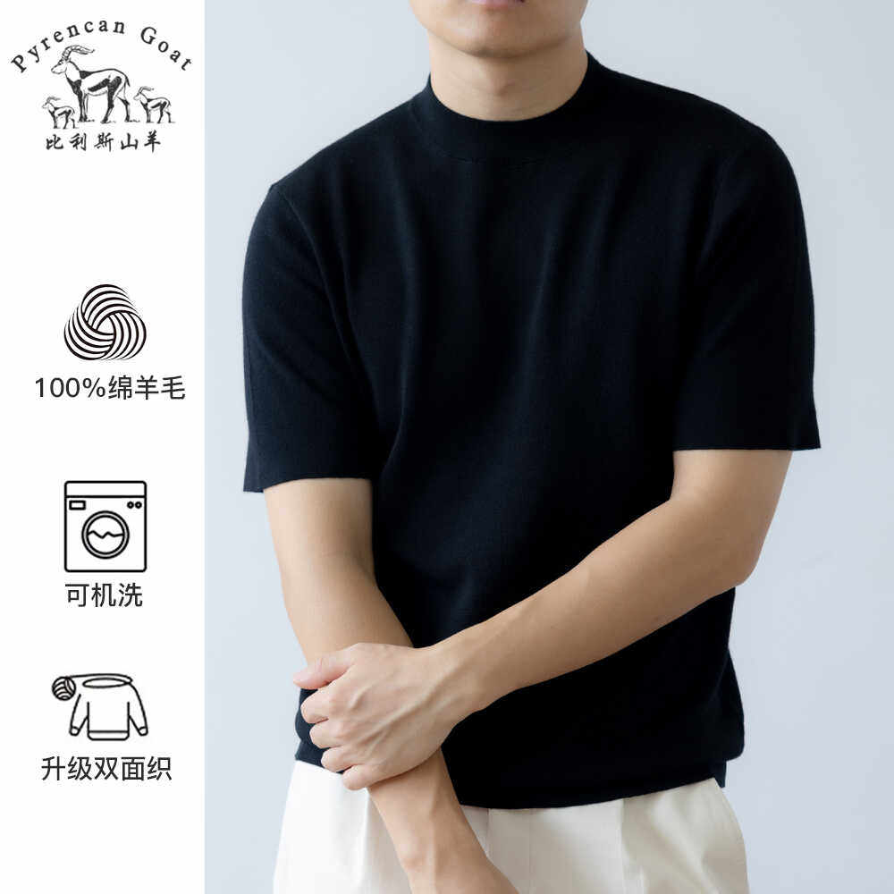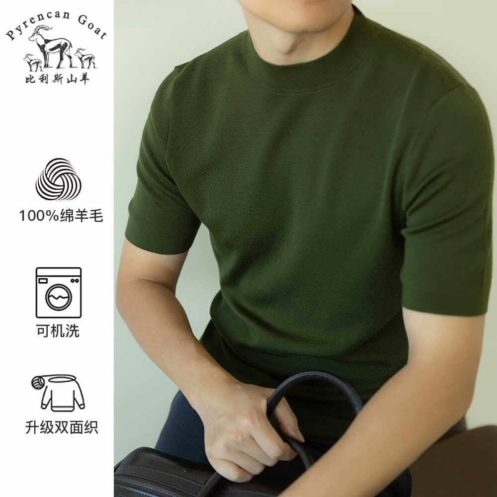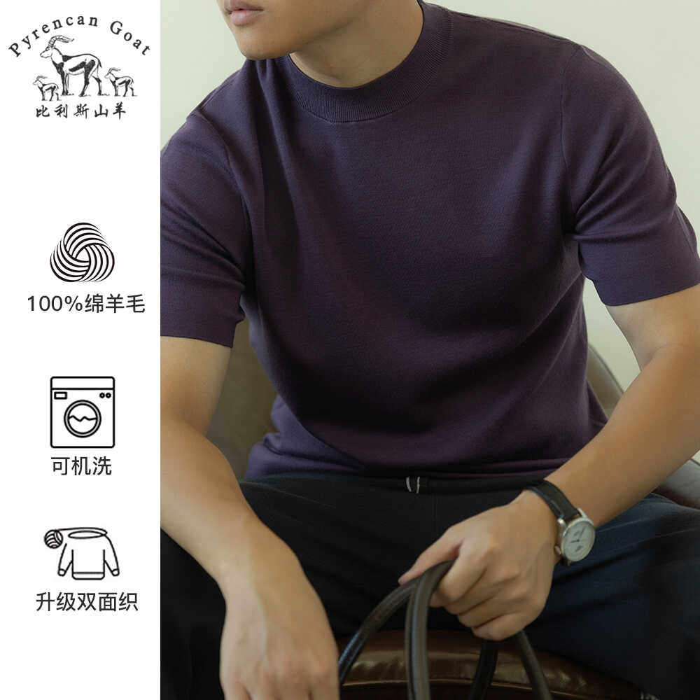 -美丽诺钻石纯羊毛- 可机洗秋季男士纯色圆领短袖T恤针织打底衫