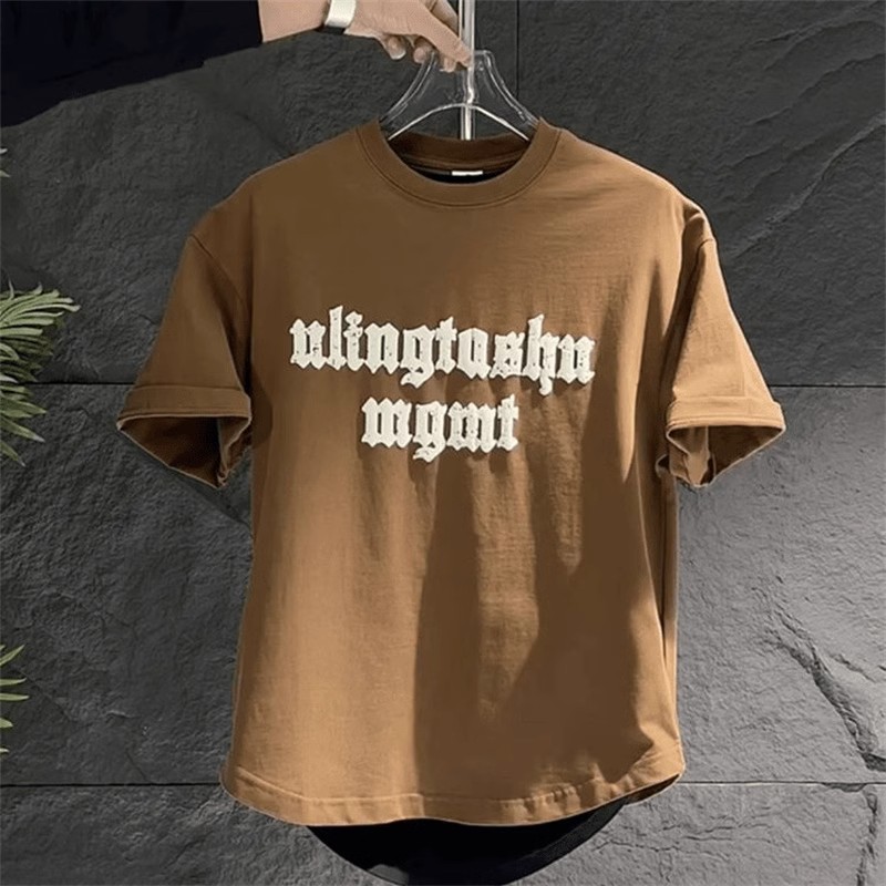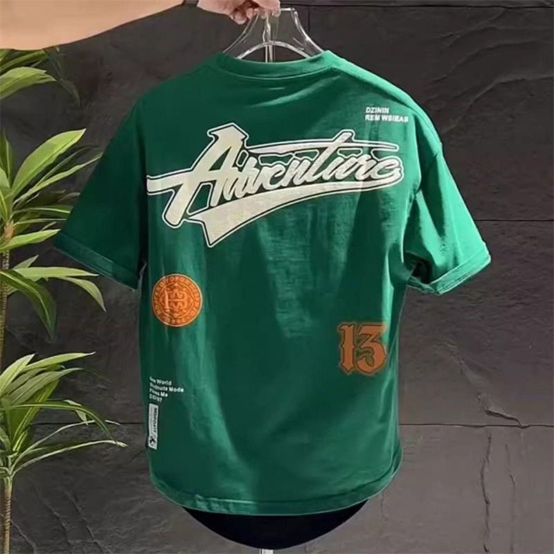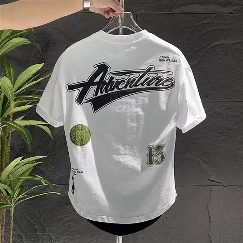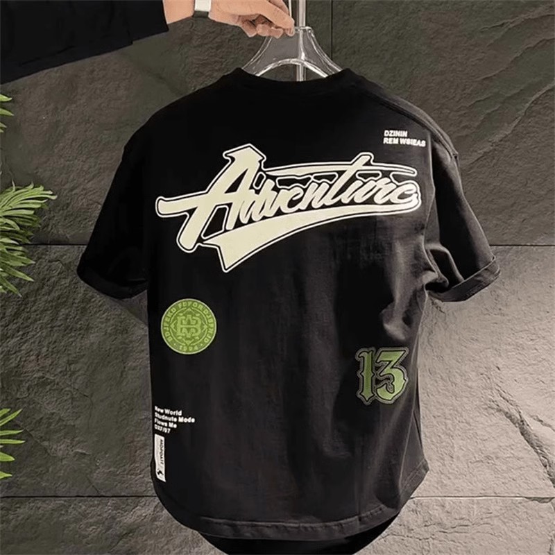 夏季纯棉短袖男潮流宽松百搭圆弧休闲半袖字母印花燕尾圆领T恤男