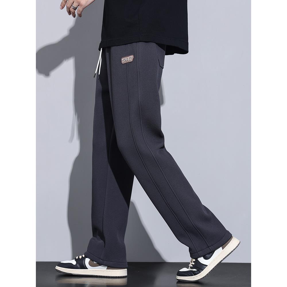以纯加绒休闲裤男士冬季华夫格卫裤加厚保暖直筒男裤潮流宽松阔腿