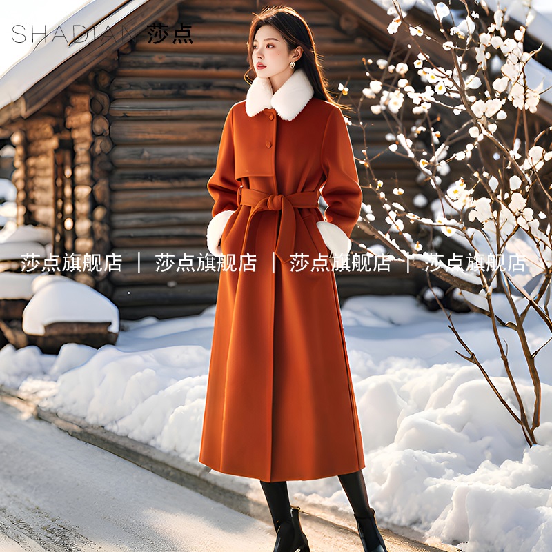 毛呢大衣加绒长外套呢子棉服莎点