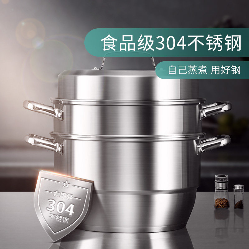 华帝三层304不锈钢蒸锅加厚复底