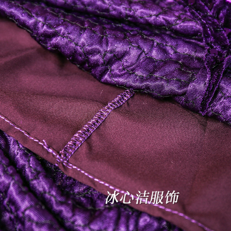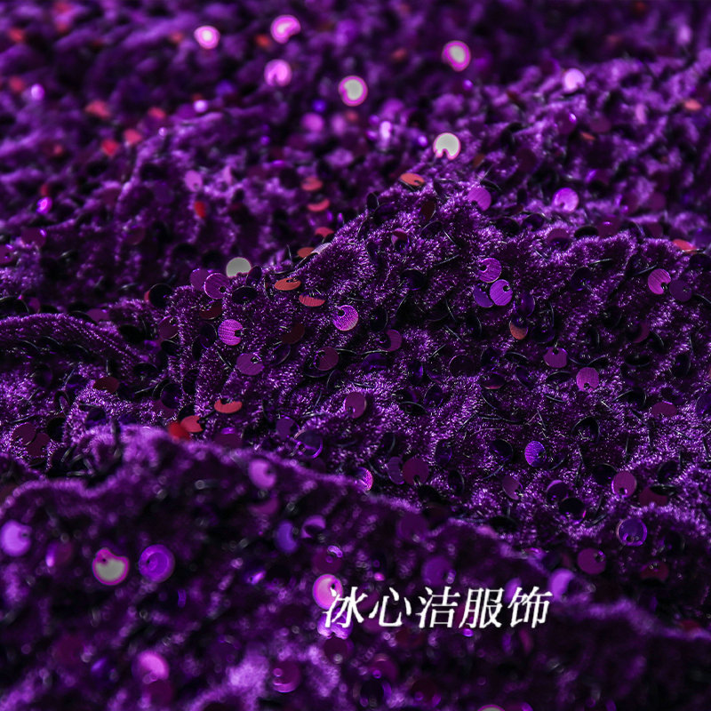 秋冬新款紫色亮片丝绒开叉半身裙
