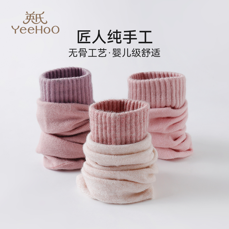 英氏儿童袜子绵羊毛加厚女童保暖无骨中筒毛圈袜秋冬新款透气防臭