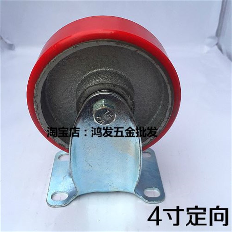 PU静音轮红万向轮活动聚氨酯推车定向心枣。中型工业铁 脚轮4寸轮