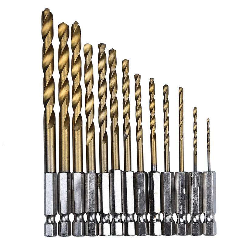 13pc高速钢镀钛麻花钻头/六角柄钻头/手电钻头1.5-6.5mm薄板钻头