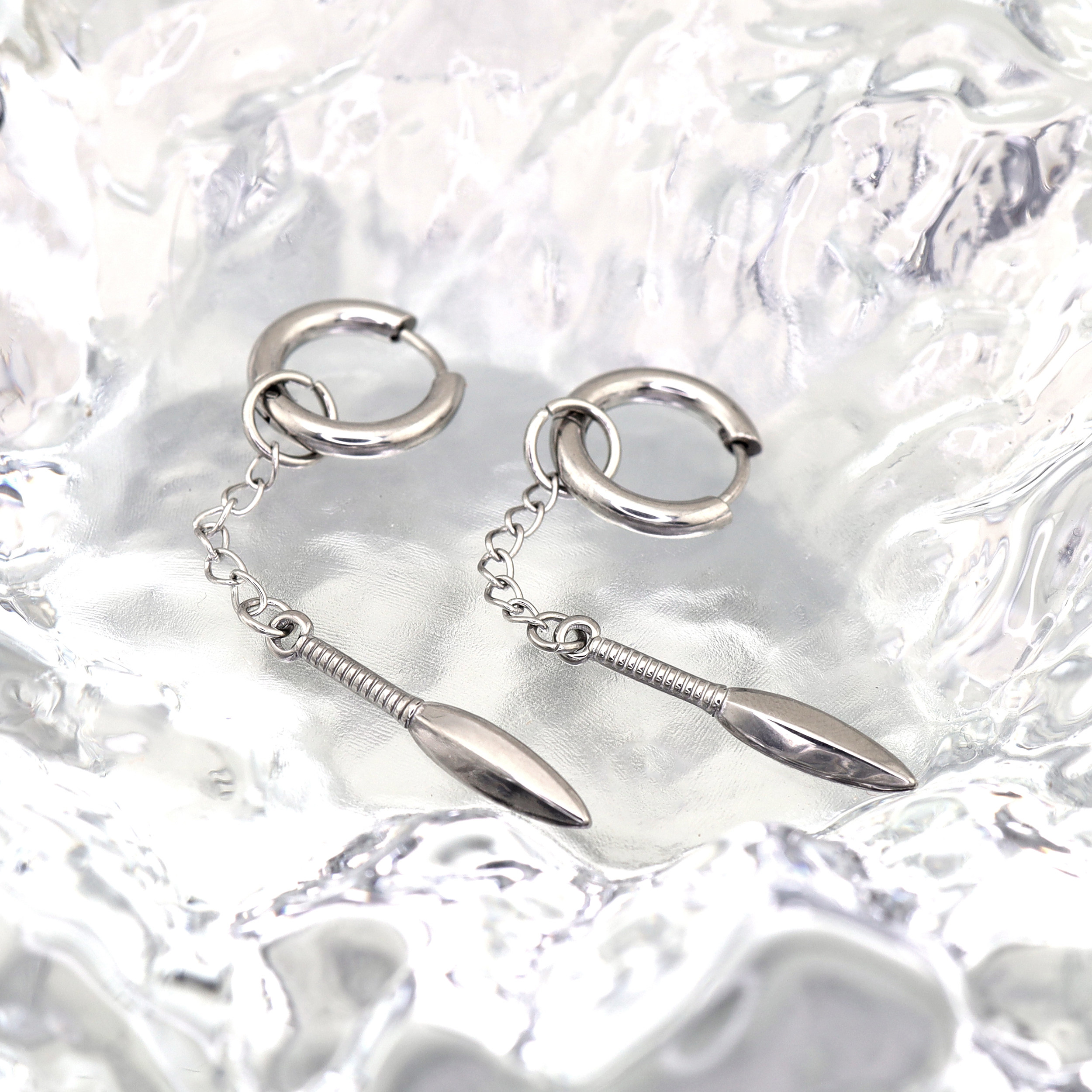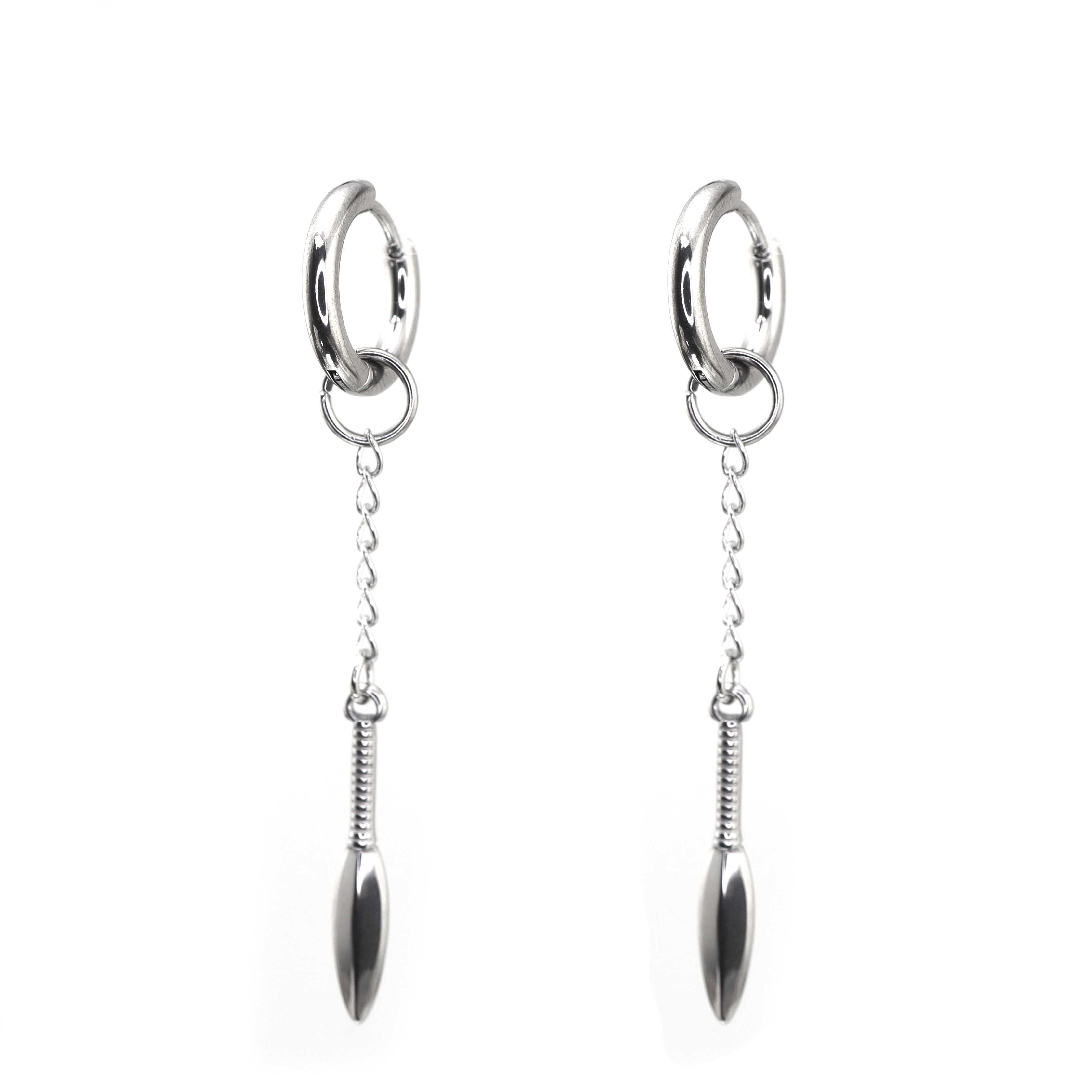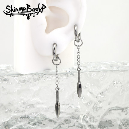Shinma钛钢银色链条匕首叶子长挂坠耳环耳坠耳钉亚比小众个性耳饰