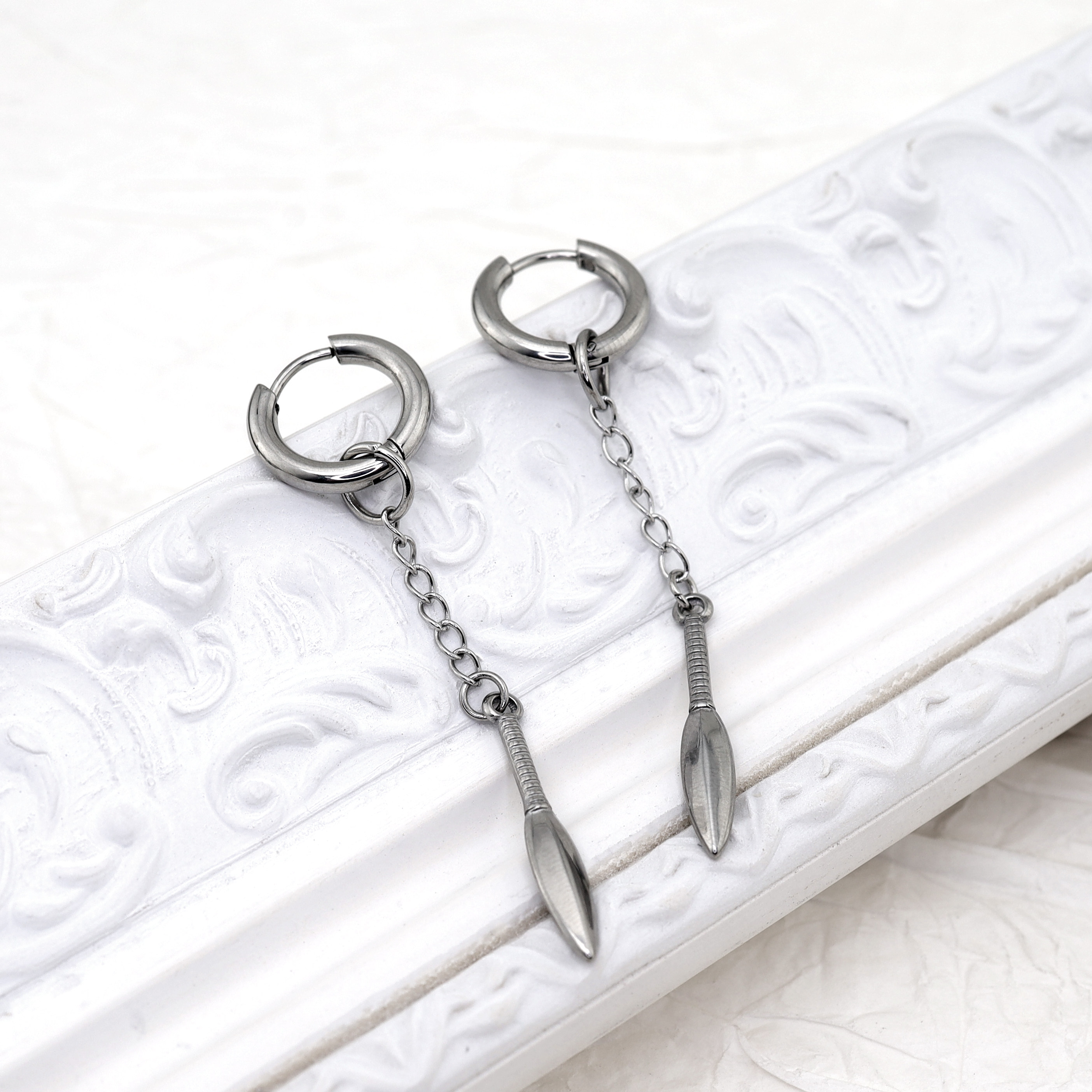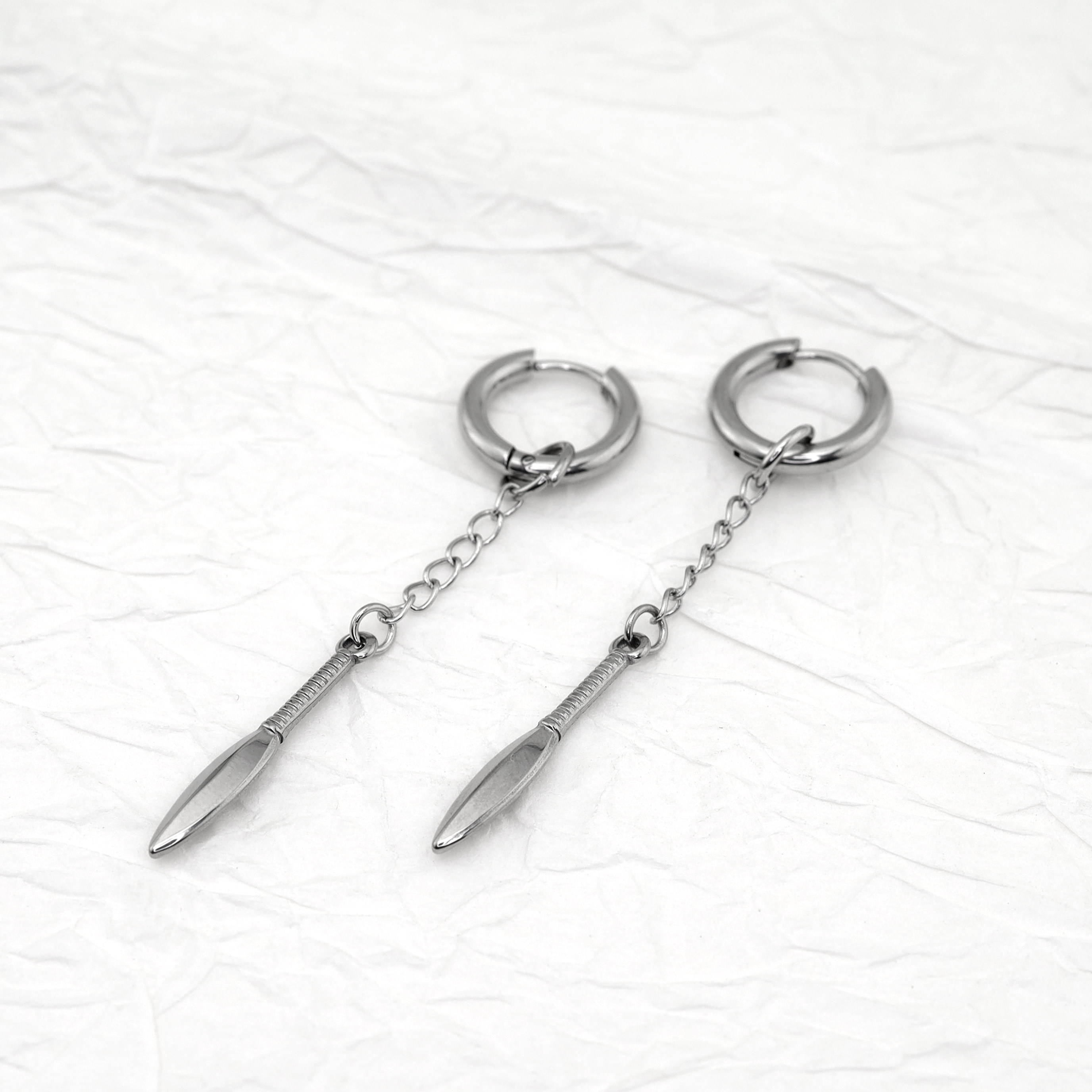 Shinma钛钢链条匕首叶子挂坠耳环