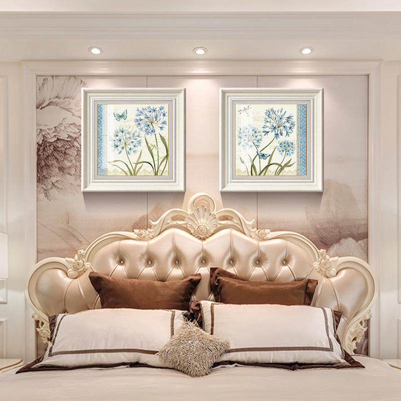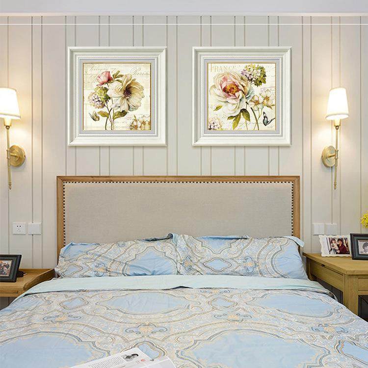 简欧现代装饰画卧室床头壁画欧式客厅挂画美式复古花卉画有框墙画