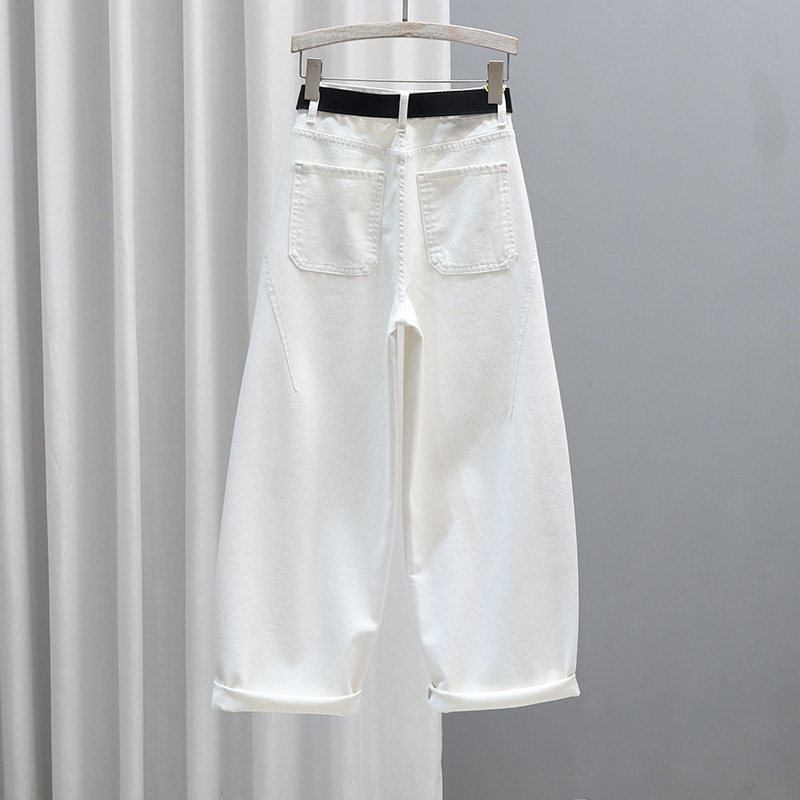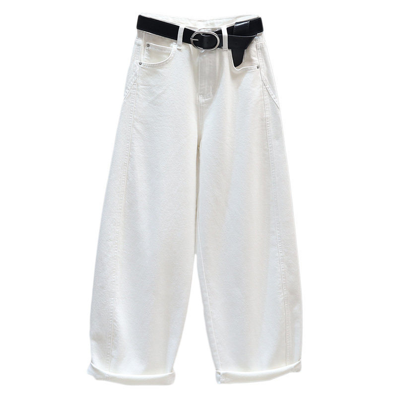 2026春夏簿款时尚牛仔老爹裤女长裤高腰宽松显瘦萝卜裤白色哈伦裤