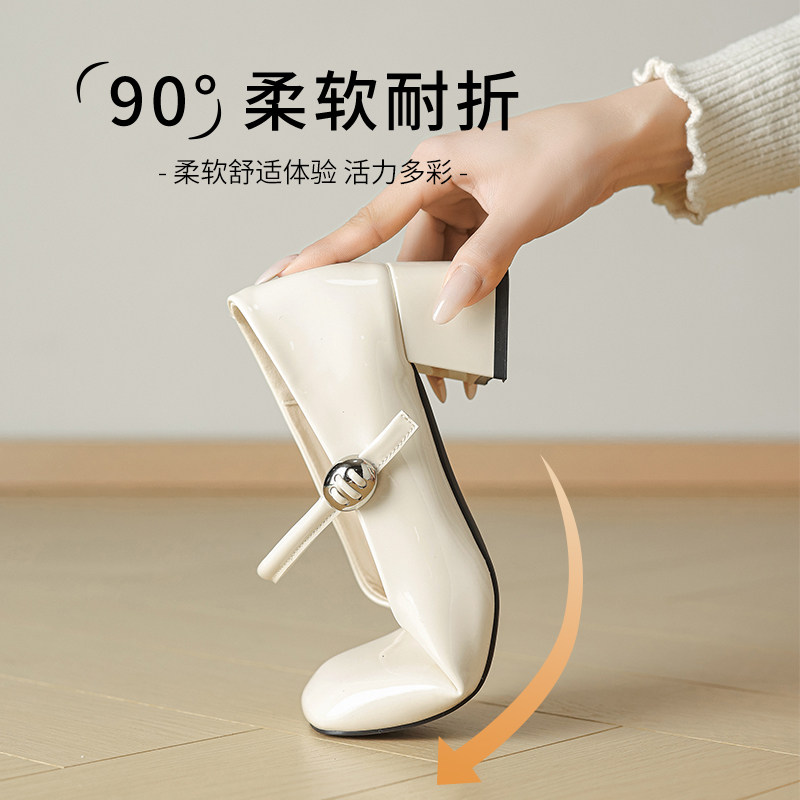 达芙妮玛丽珍鞋女2026新款春季白色高跟鞋浅口单鞋绝美方头小皮鞋
