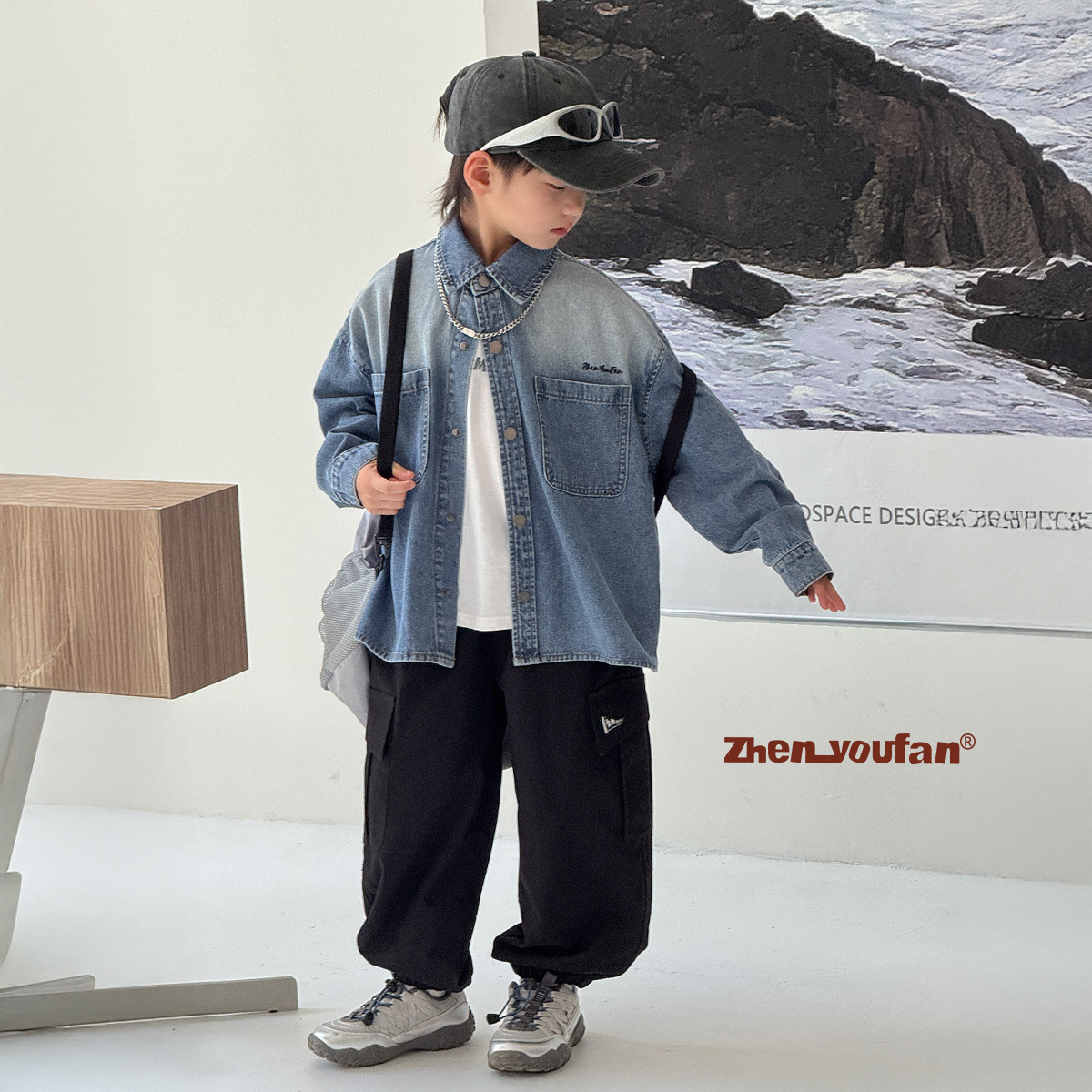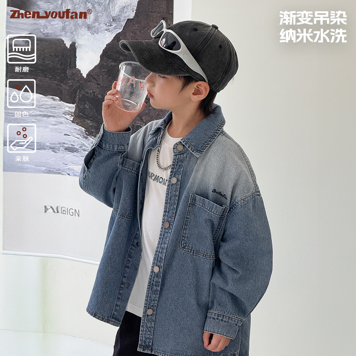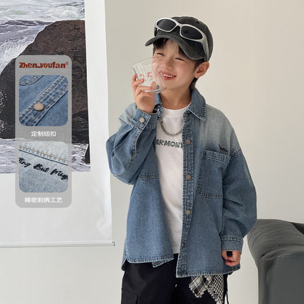 潮范男童牛仔衬衫2025秋季新款儿童长袖衬衣外套蓝色120~160男孩
