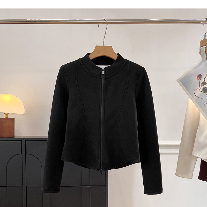 LU家同款!立体裁剪小蛮腰修身双面绒羊毛蚕丝蛋白立领夹克外套女