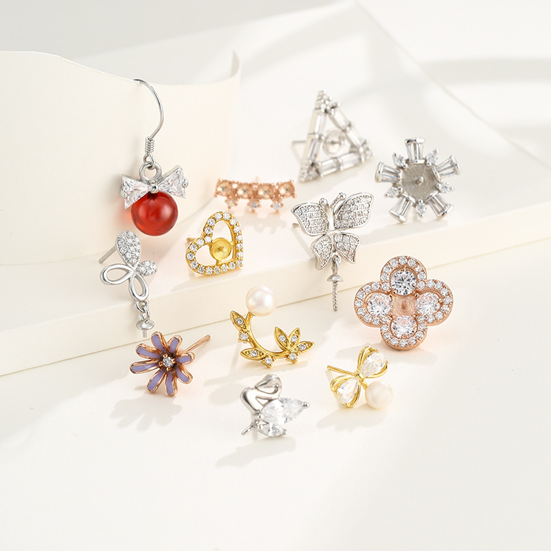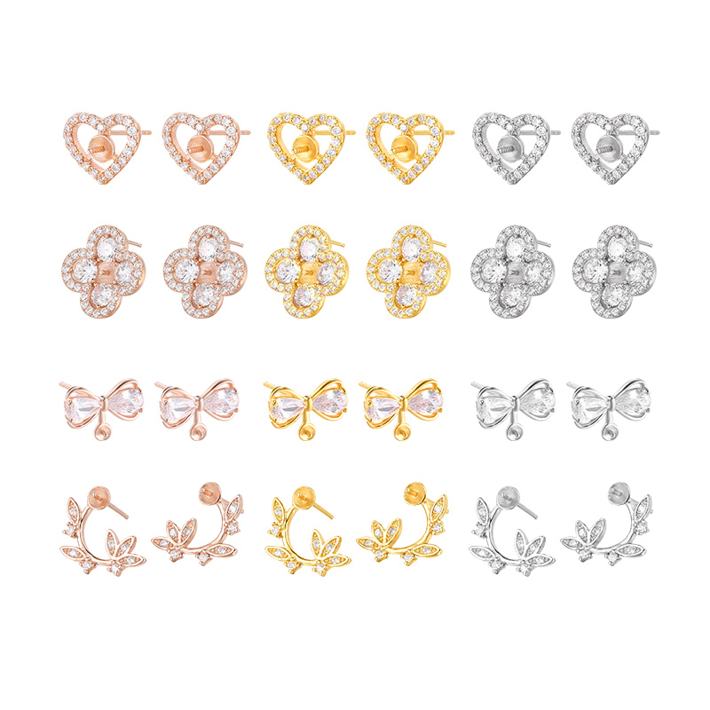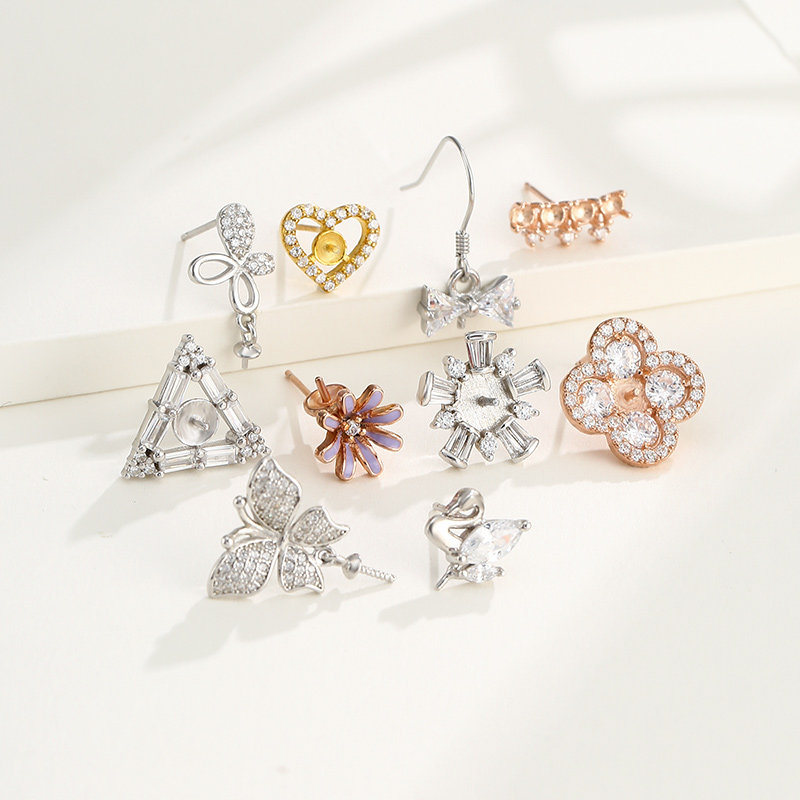 925纯银耳钉空托配件 diy珍珠耳环耳坠托女日韩18K金耳钩耳夹配饰