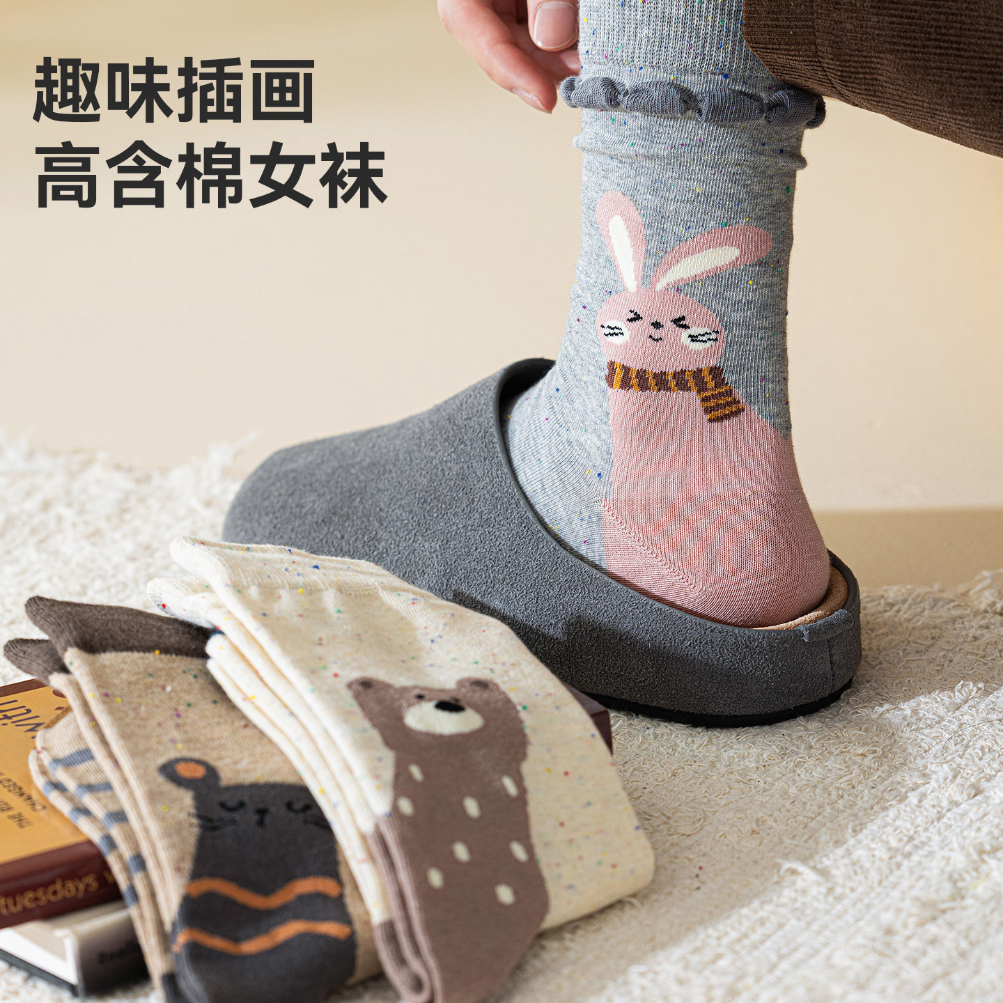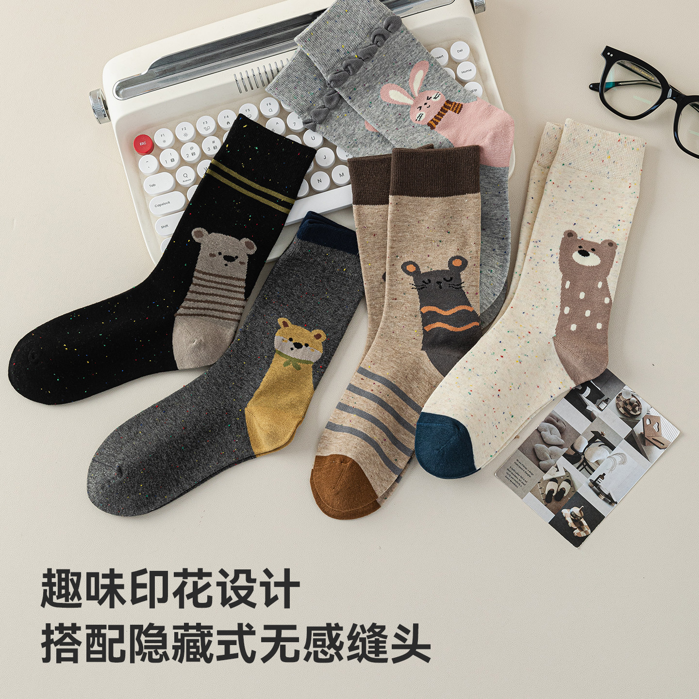 猫人袜子女中筒袜2025新款秋冬季女袜可爱卡通动物柔软吸汗透气