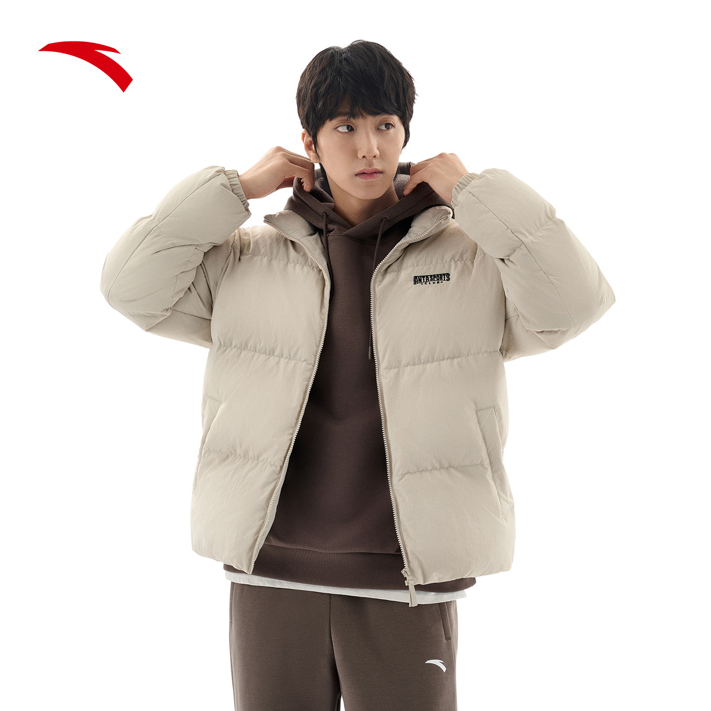 安踏男子短款防泼水休闲羽绒