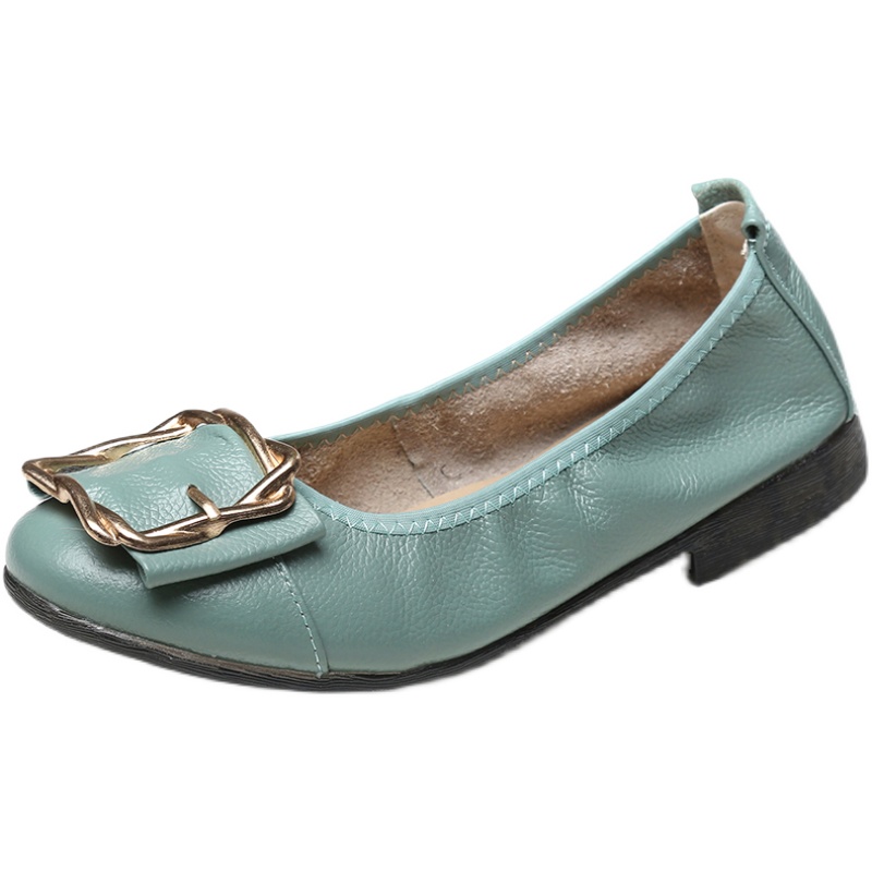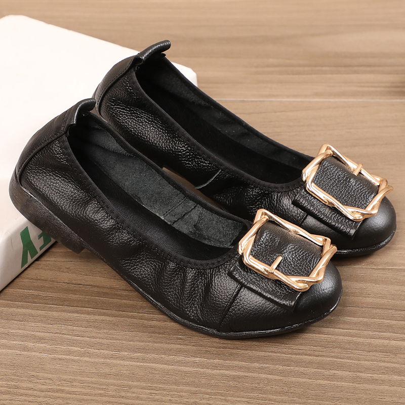 春秋季真皮舒适妈妈鞋软底圆头浅口女士单鞋豆豆鞋平底休闲皮鞋女