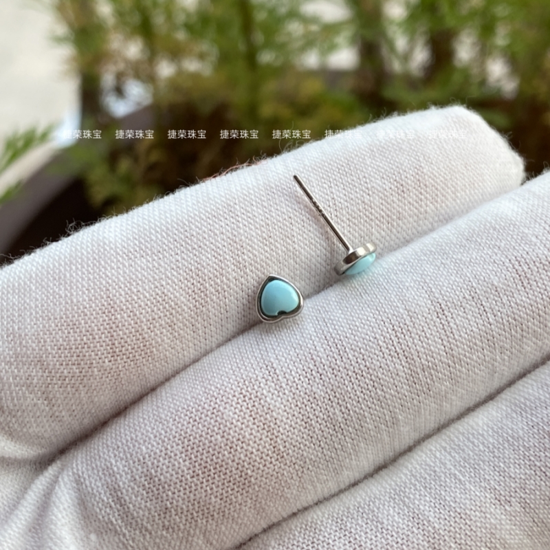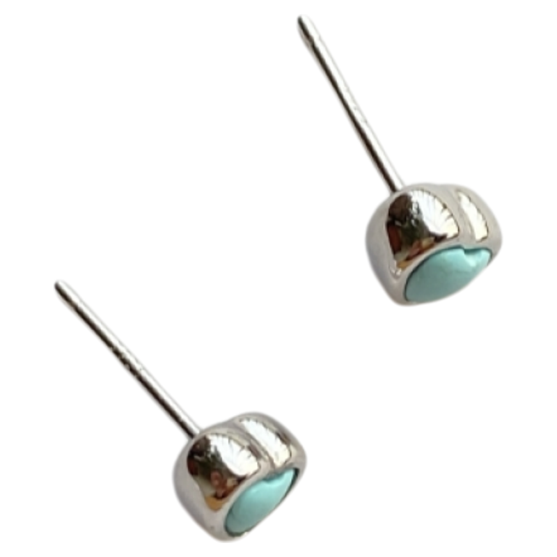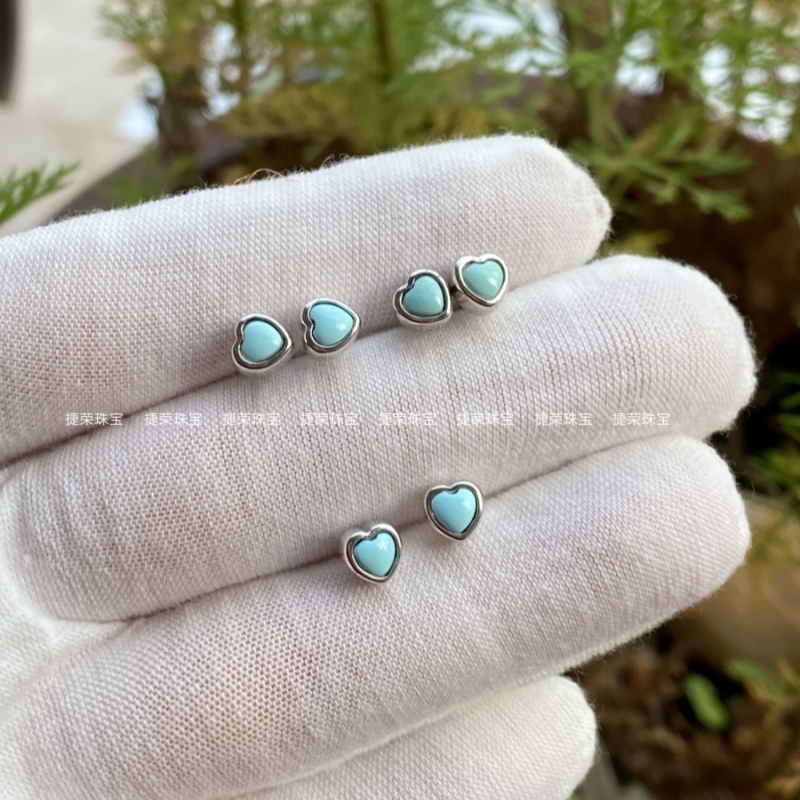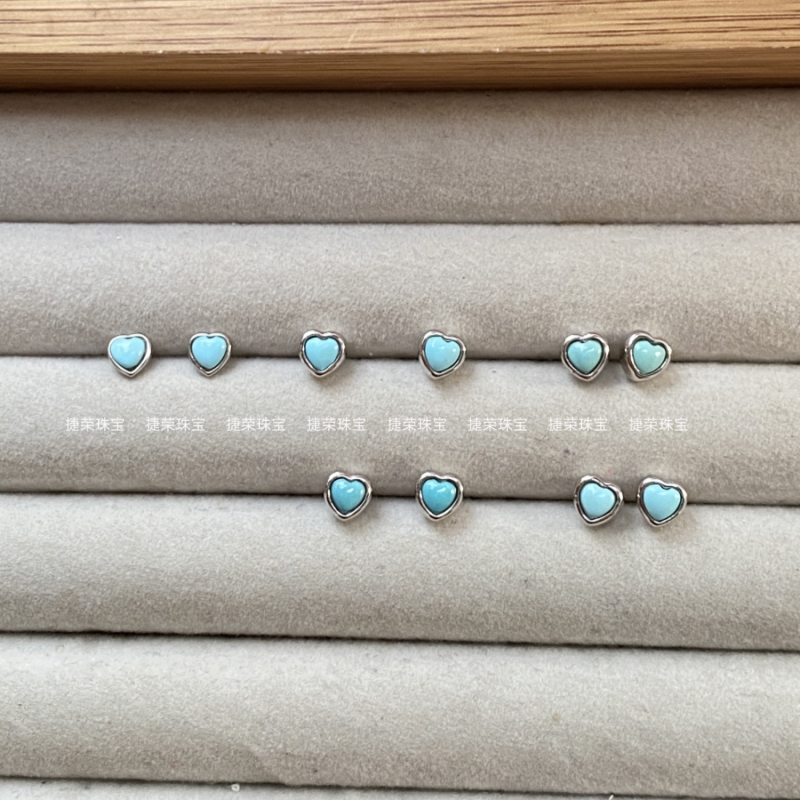 s925纯银镶嵌迷你天然湖北绿松石爱心耳钉厚款高级感小众男女耳饰